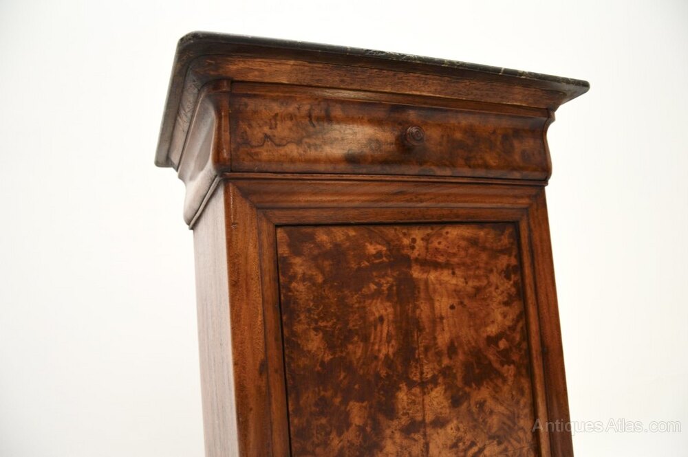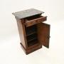 It is of superb quality and it is a very useful size. It is perfect for use as a bedside cabinet, the back is also nicely polished so it can be used as a free standing lamp table in a lounge or around the home. The burr walnut grain patterns are gorgeous and this has a lovely grey flecked marble top that is attached to the base.
