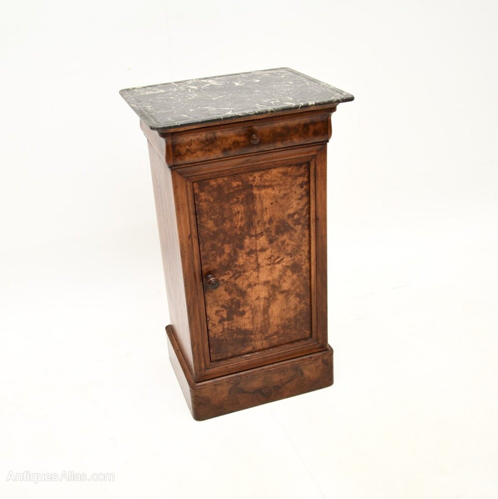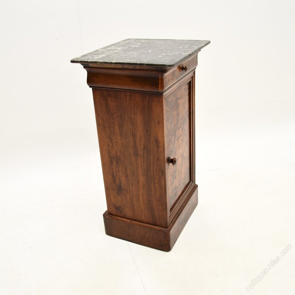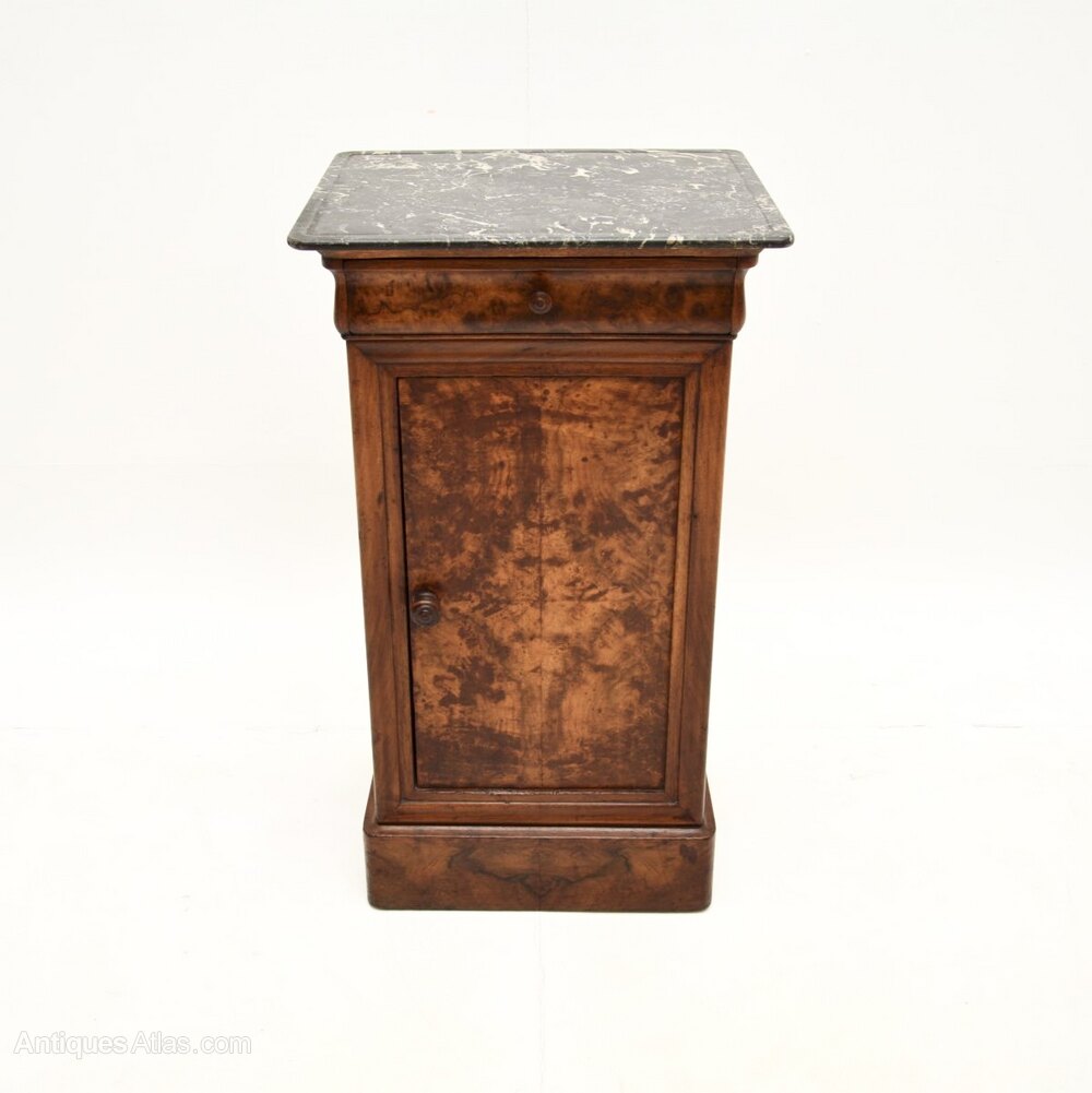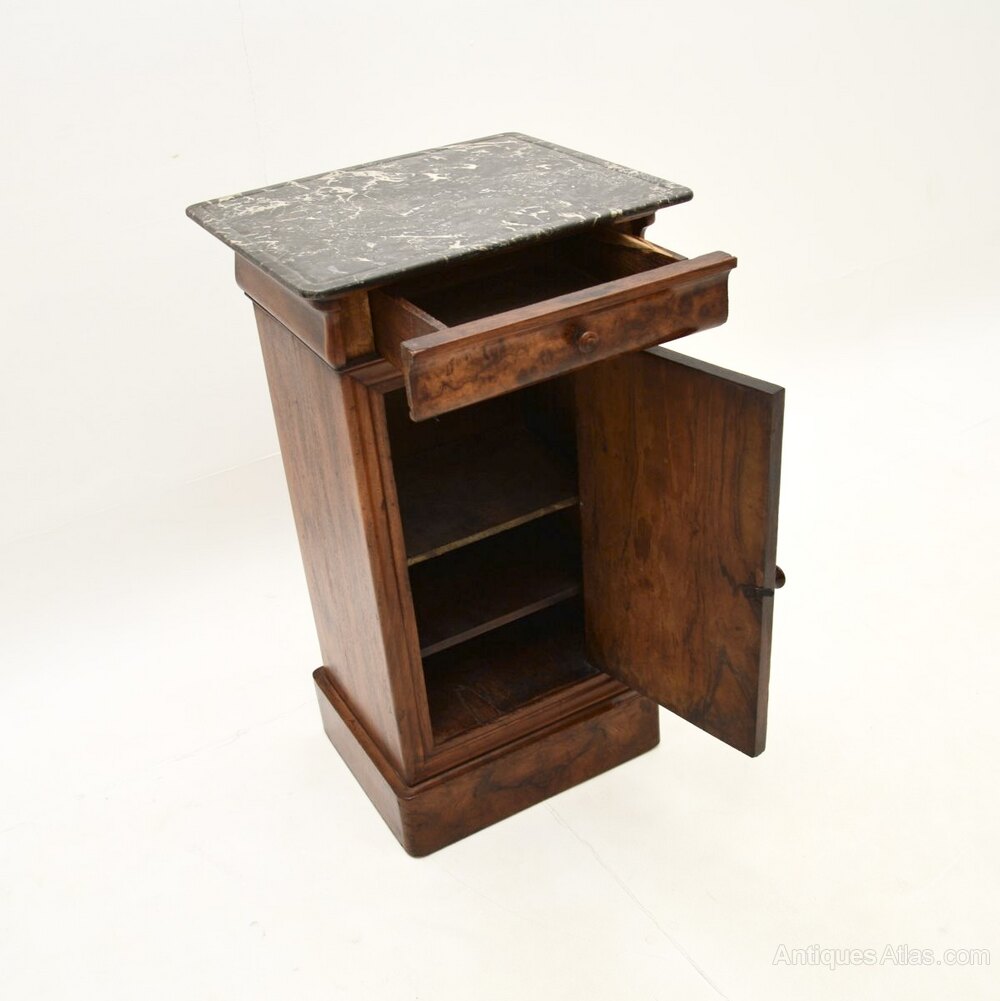 A wonderful antique French walnut marble top bedside cabinet, dating from around the 1880-1900 period.