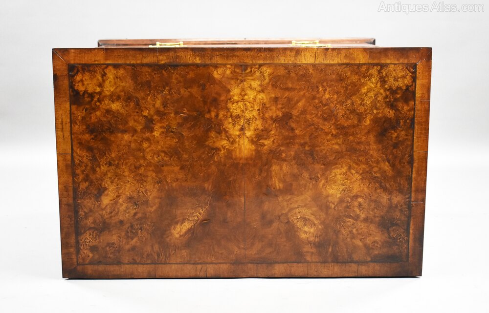 Attractive burr walnut book-matched veneers to the top and drawer fronts