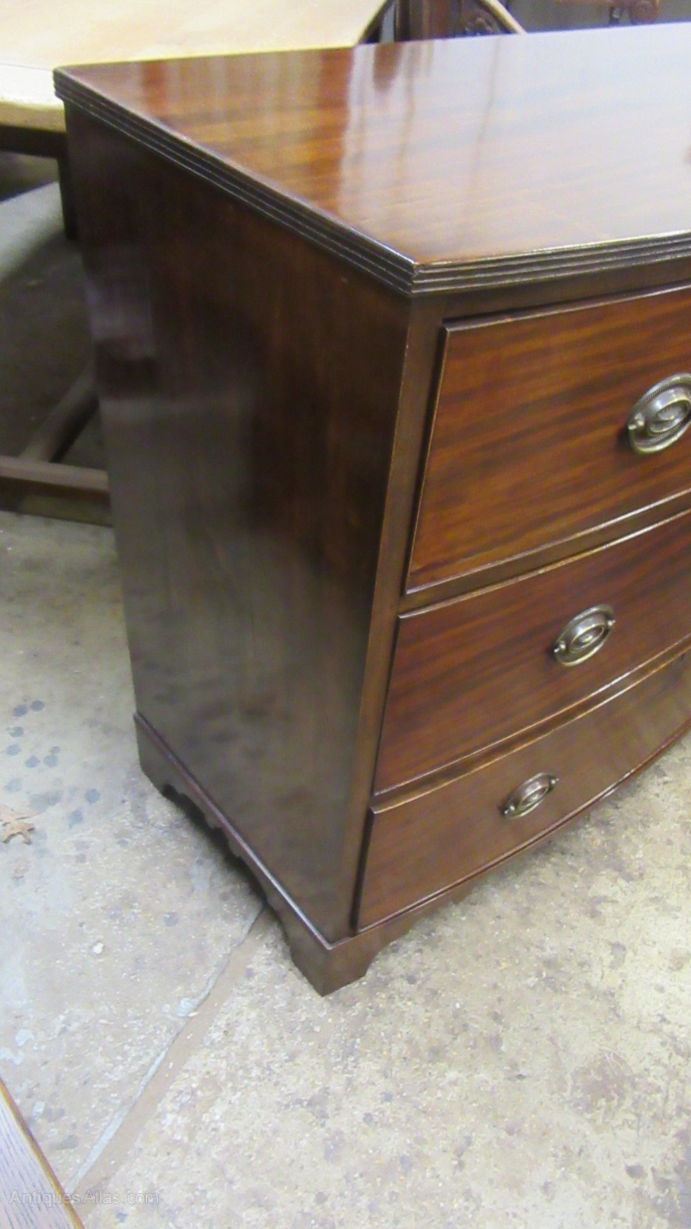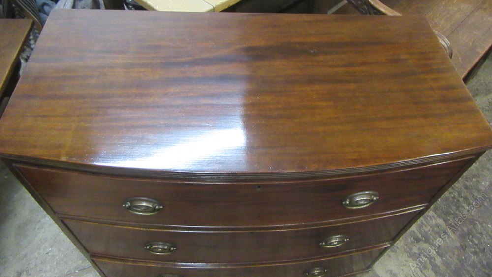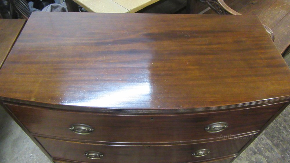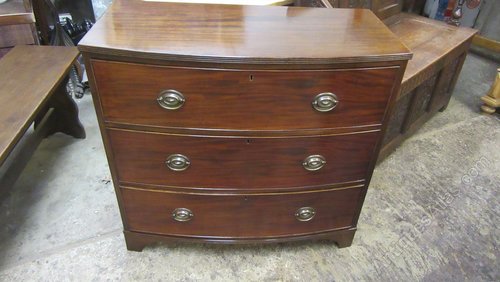 Antique Georgian Mahogany Bow Front Chest Of Drawers with Three Long Drawers 86 cm high 92 cm wide 46 cm deep
