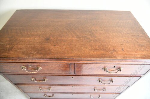 Antique Georgian Oak Chest of Drawers. George III oak chest of drawers, two short over three long drawers with brass swan neck handles on bracket feet.