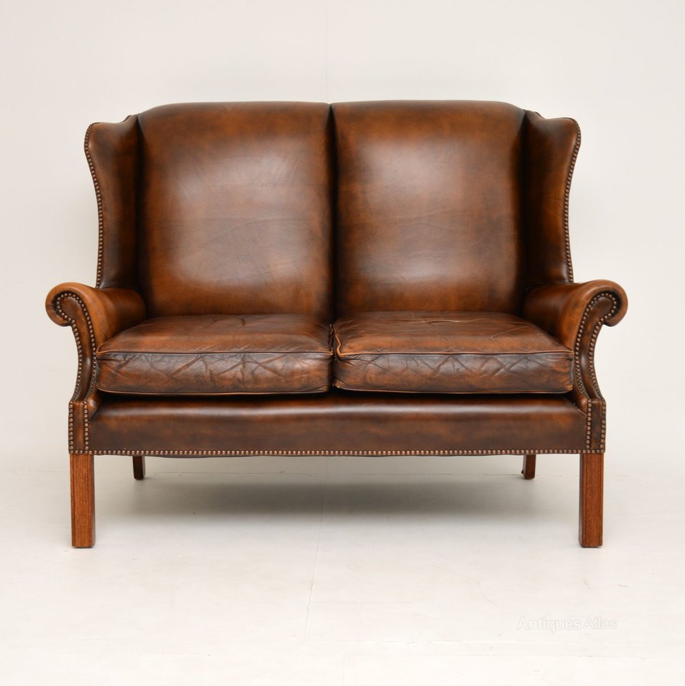 Very comfortable antique Georgian style two seater wing back sofa in good original condition & dating from around the 1960’s period.