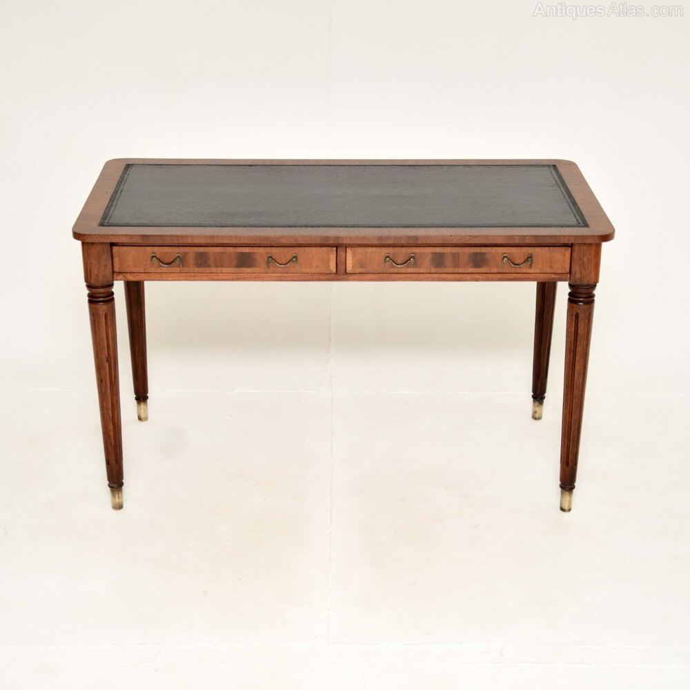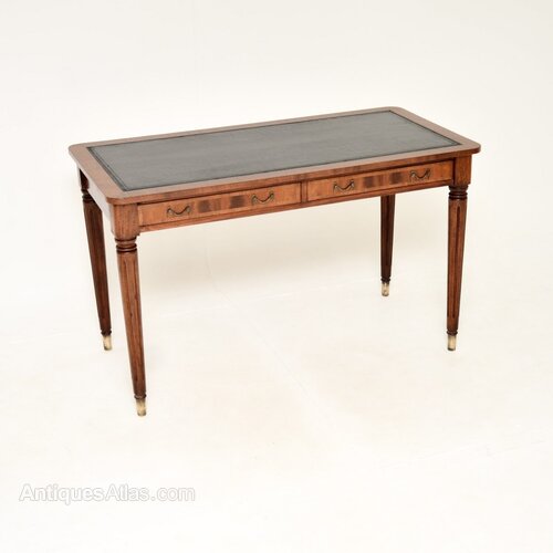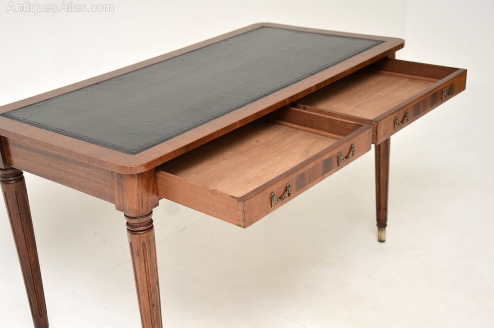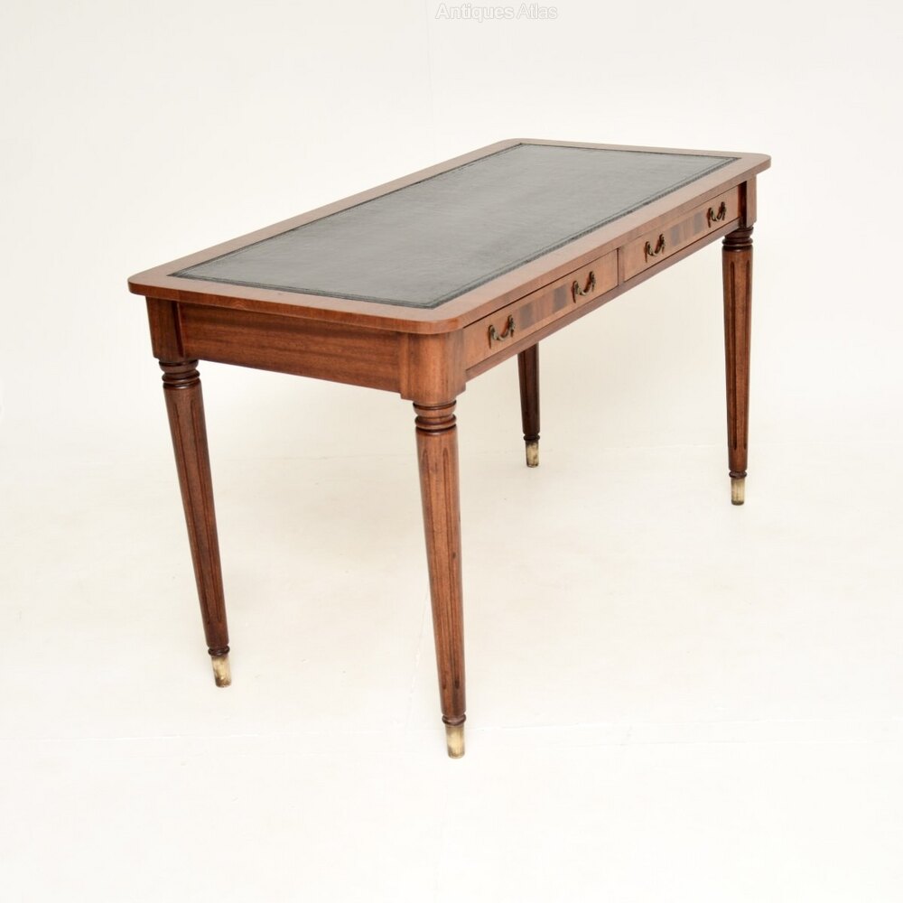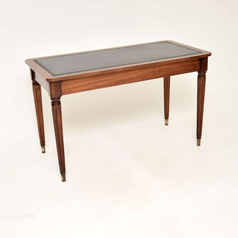 A smart and beautifully designed antique Georgian style mahogany leather top writing table / desk. This was made in England, we would date it to around the mid-late twentieth century.