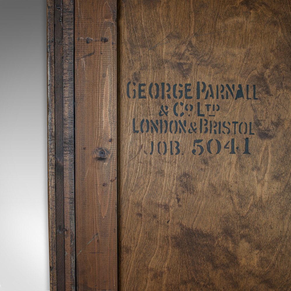 This is a substantial antique glazed wardrobe cabinet. An English, oak retail, display shop fitting cabinet by aircraft and store planning specialists George Parnall and Co, and dating to the late 19th century, circa 1900.
