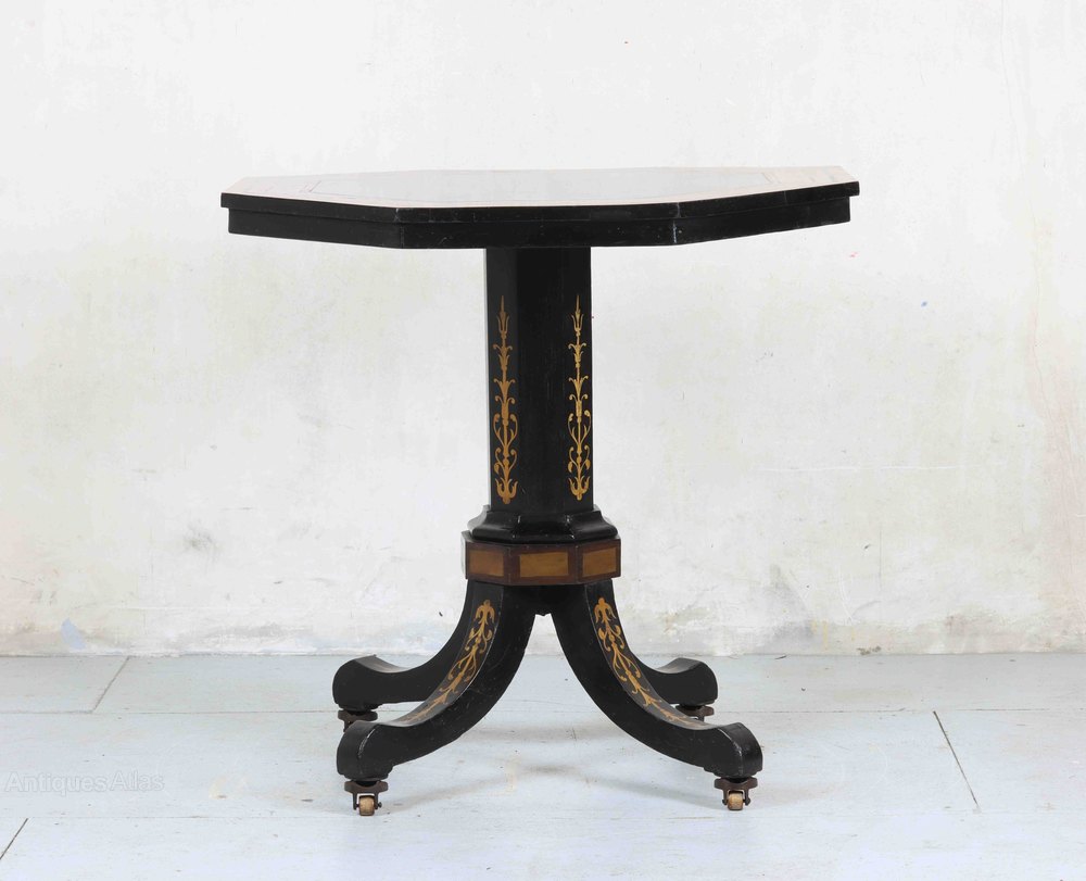 Antique Inlaid & Ebonised Octagonal Pedestal Table