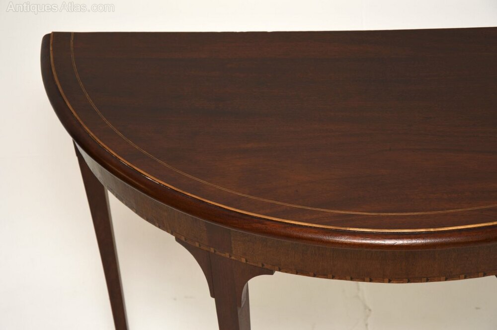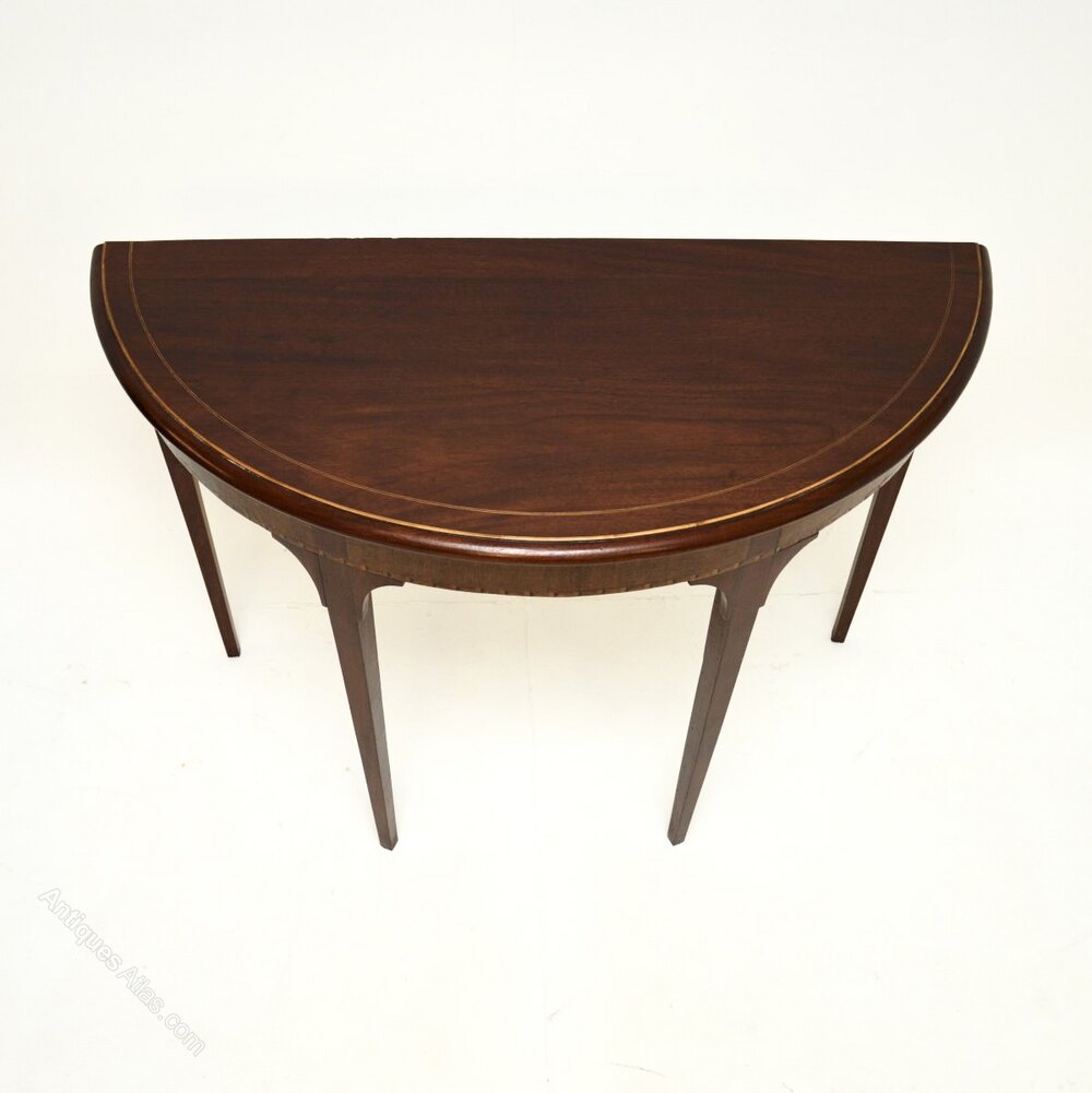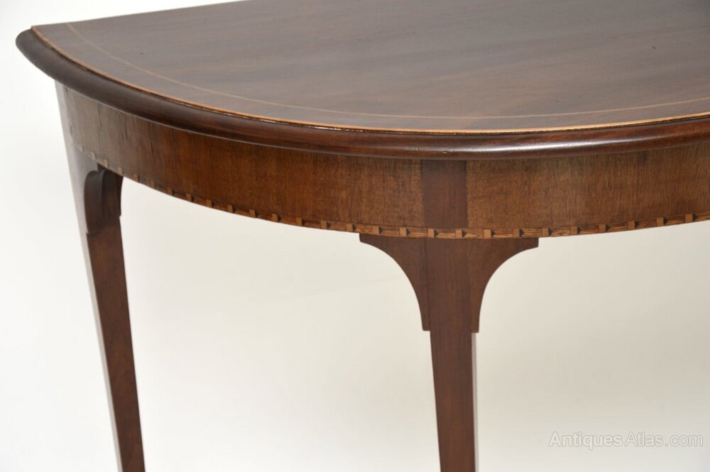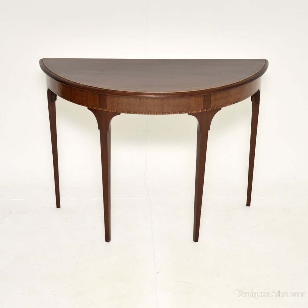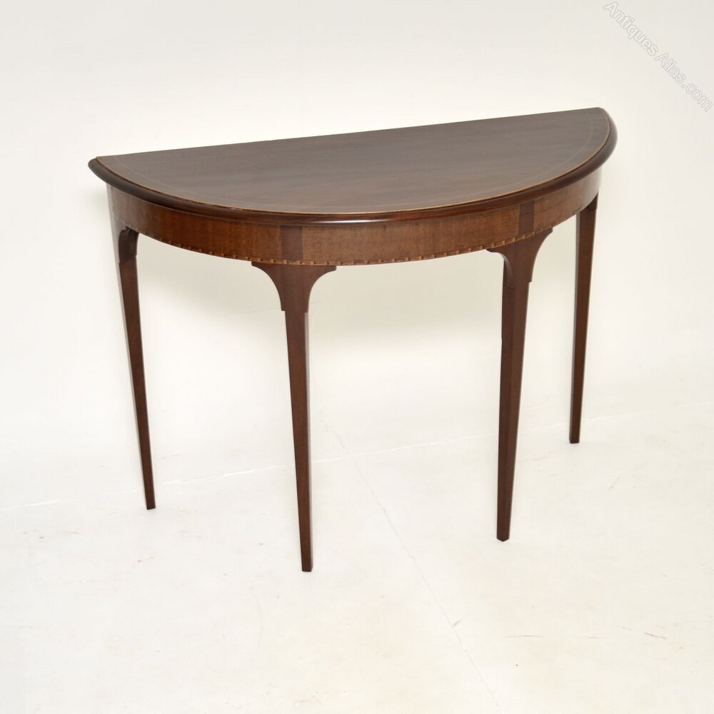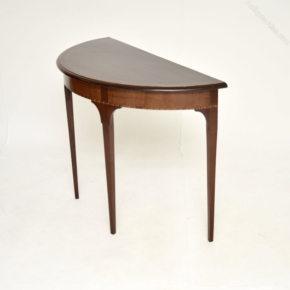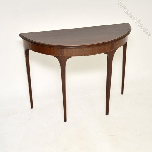 A beautiful and extremely well made antique inlaid mahogany console table. This was made in England, we would date it from around the 1900-1910 period.