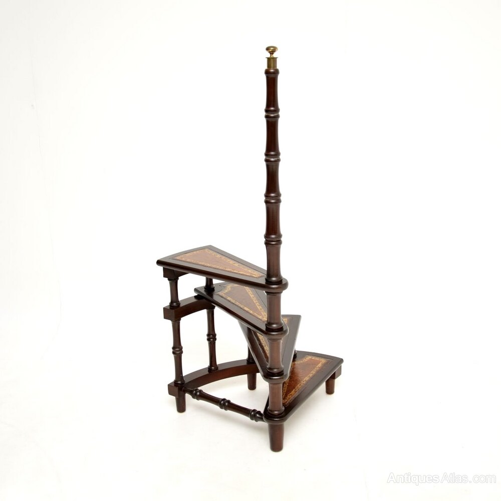 Antique Mahogany and Leather Library Steps