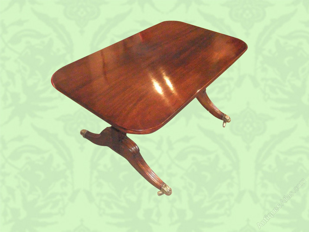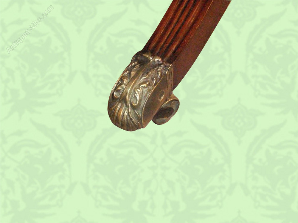 The top is a very good piece of solid mahogany of great colour. The base with splay legs ending with fantastic brass castors.