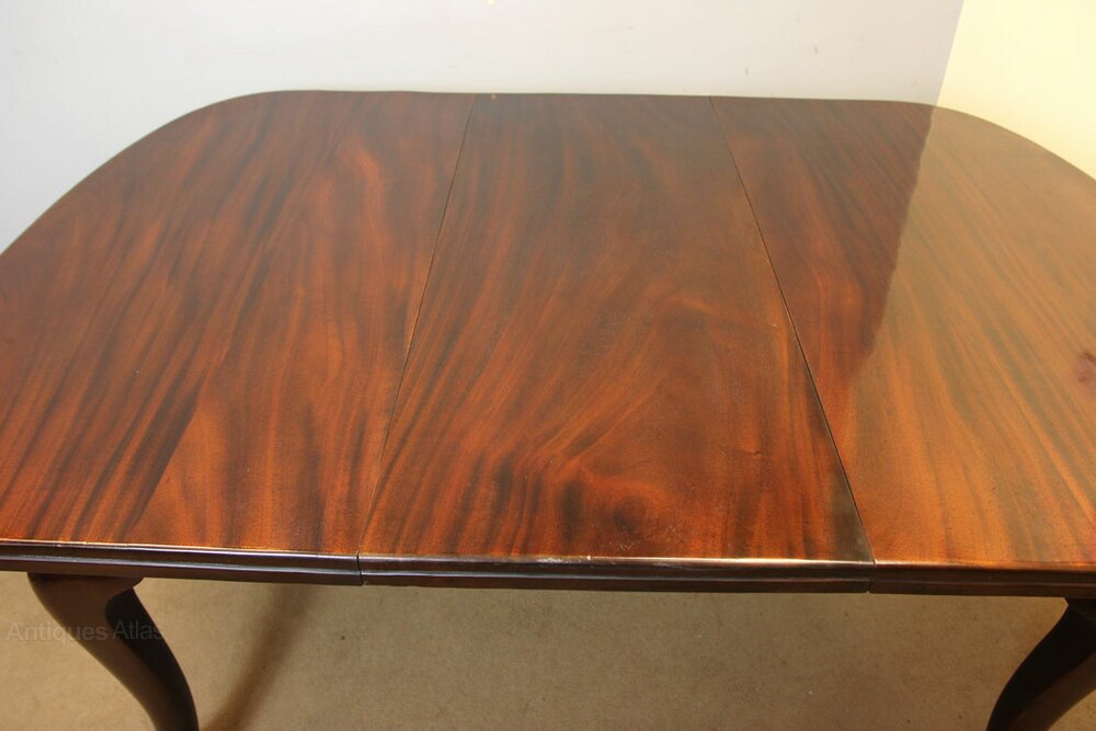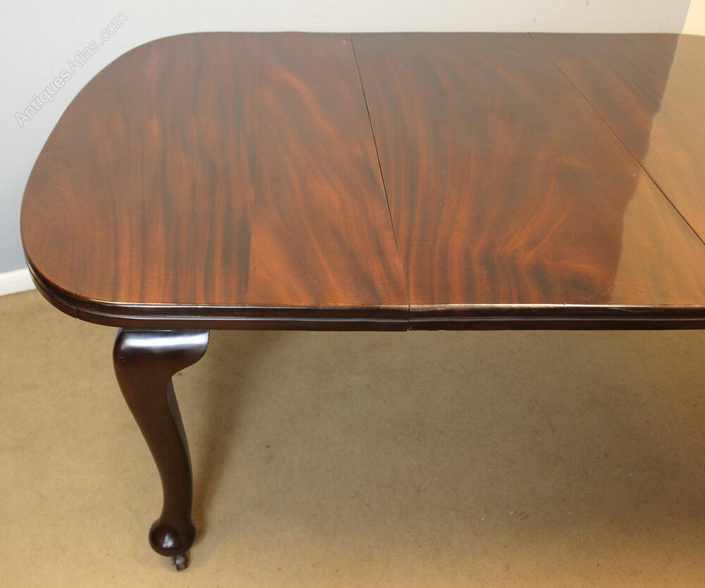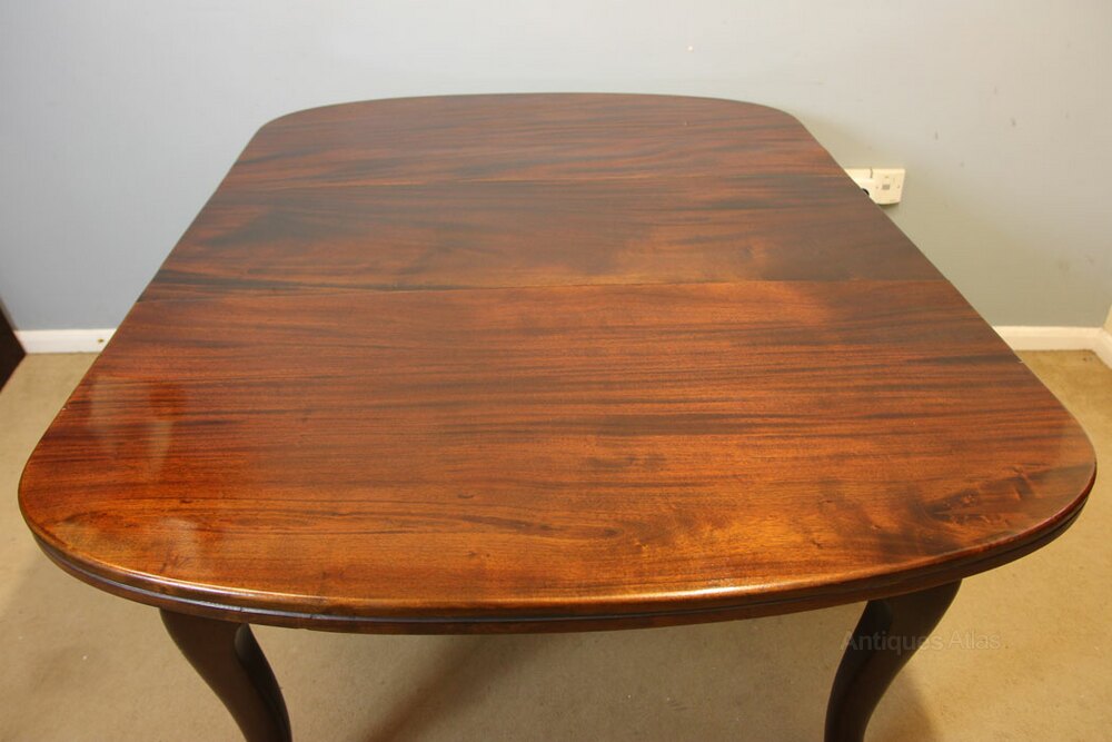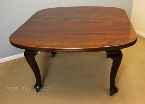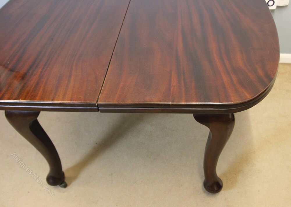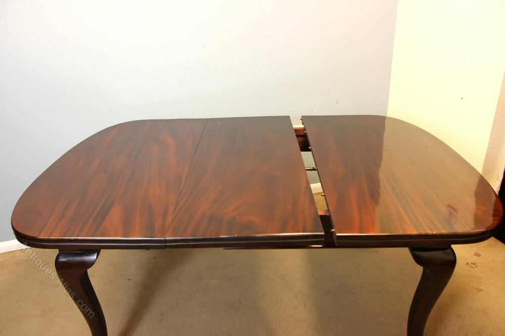 Antique Mahogany Extending Dining Table, This antique quality mahogany D end dining table has one extending leaf and is supported by plain queen anne style legs with castors under,