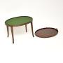The quality is fantastic, the oval top has a raised pie crust edge with brass carry handles. It lifts right off the base to be used as a serving tray, the sabre shaped legs are nicely splayed.