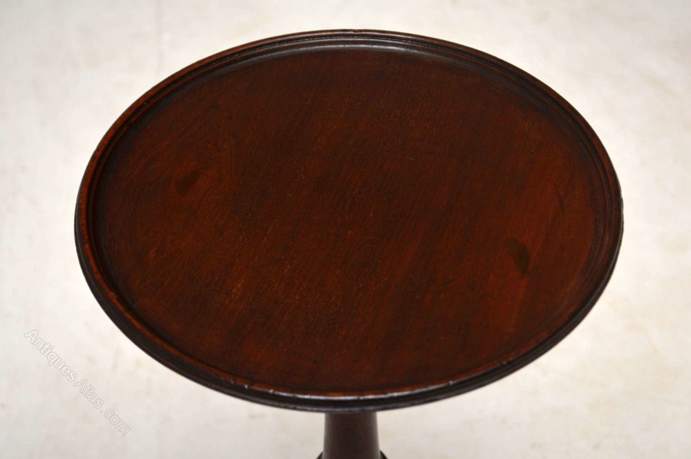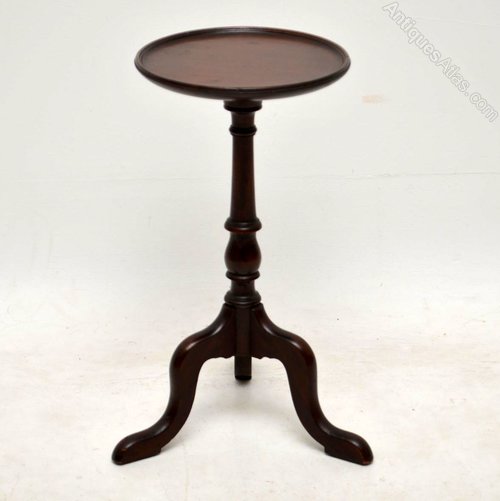 Small antique Edwardian mahogany wine table in excellent original condition & dating from the 1890-1910 period. It has a small circular top with a turned pedestal, sitting on tripod feet.