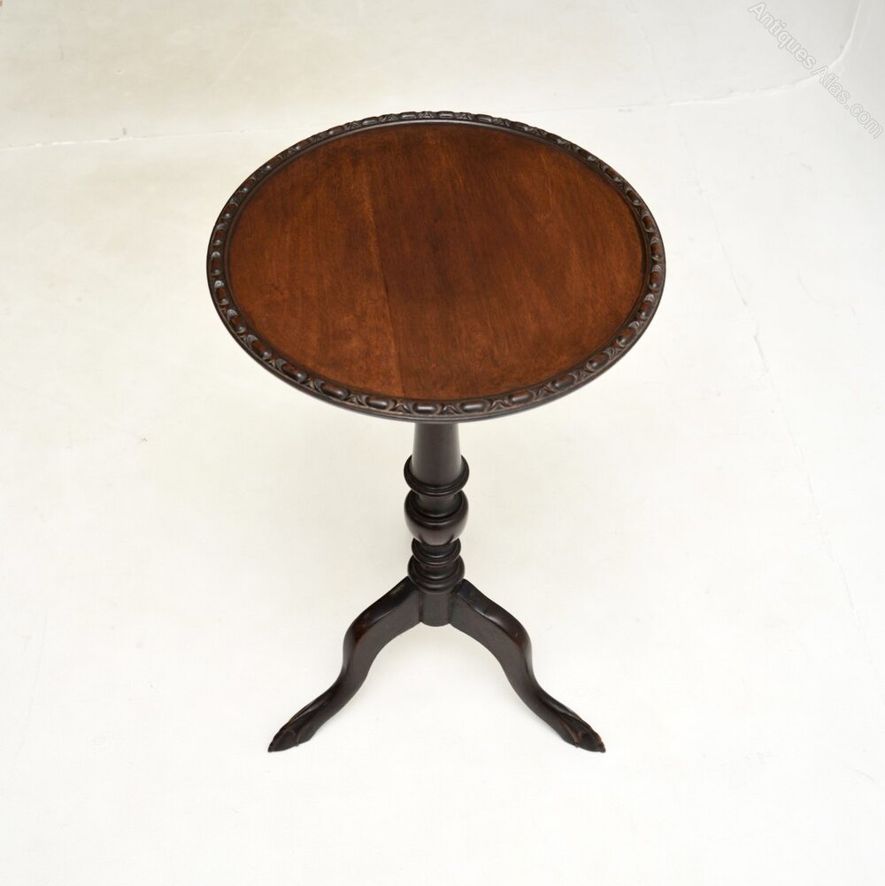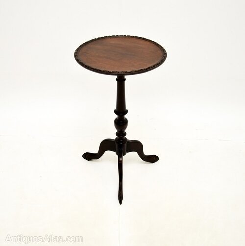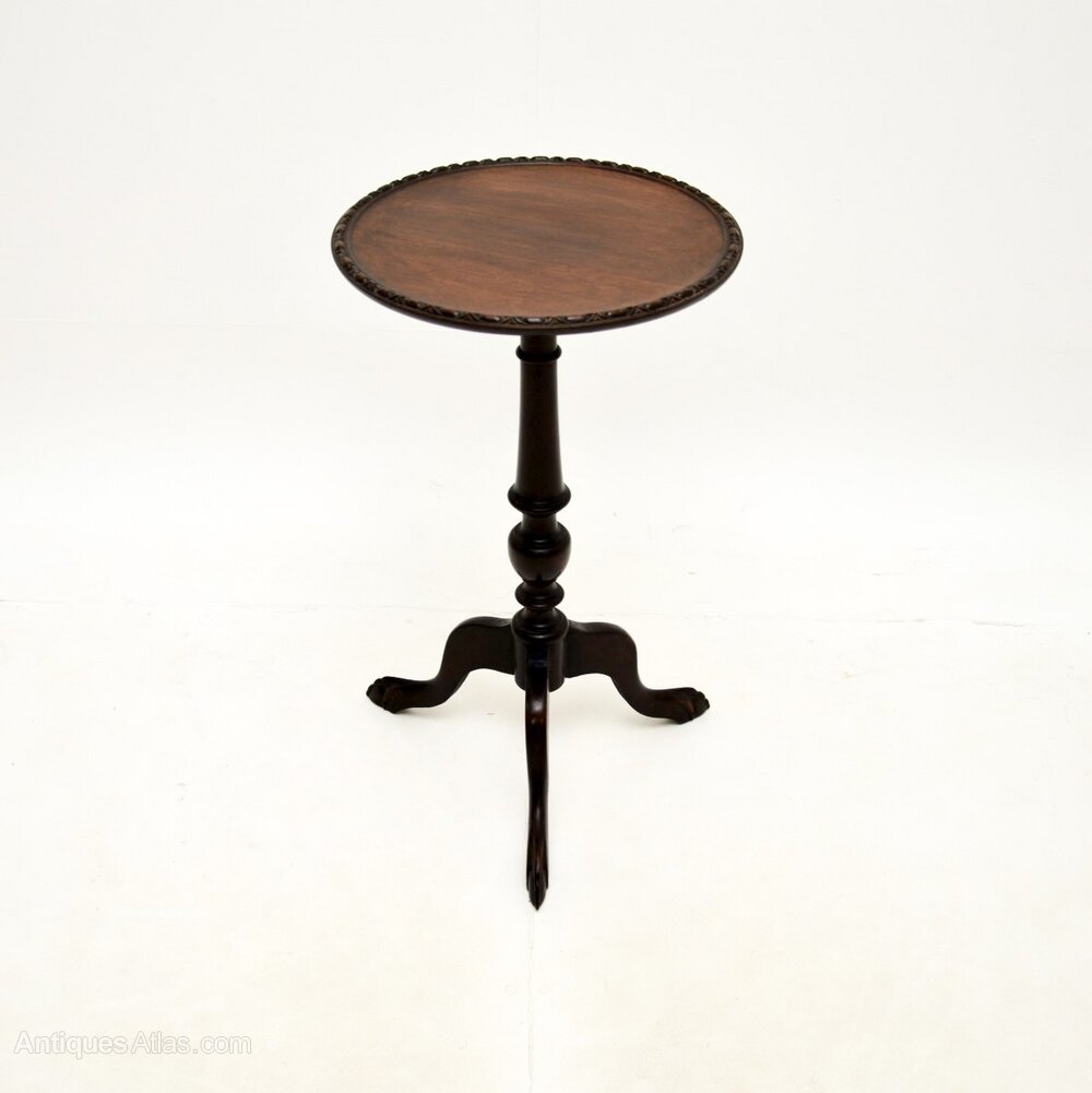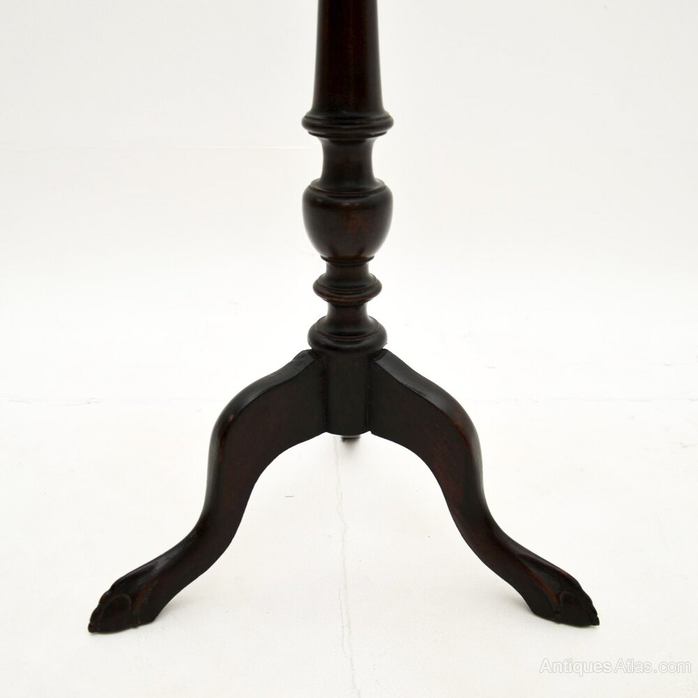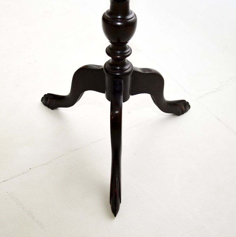 It is of superb quality, it is quite tall is a very useful item. The circular top has a slightly raised and beaded edge, it sits on an elegant yet sturdy tripod base with legs that terminate in claw and ball feet.