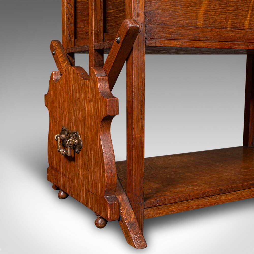 A highly engaging and functional piece, this antique Canterbury stand combines aesthetic charm with ingenious versatility. A rare example of Edwardian craftsmanship, perfect for lovers of Arts & Crafts interiors or unique bibliophile furniture. Solid joints and construction, delivereq21ready for the home.