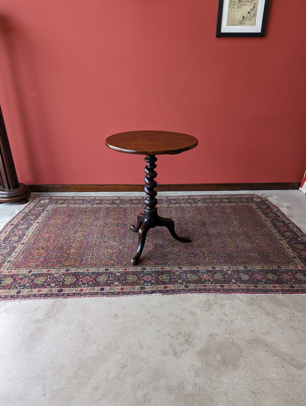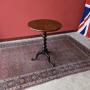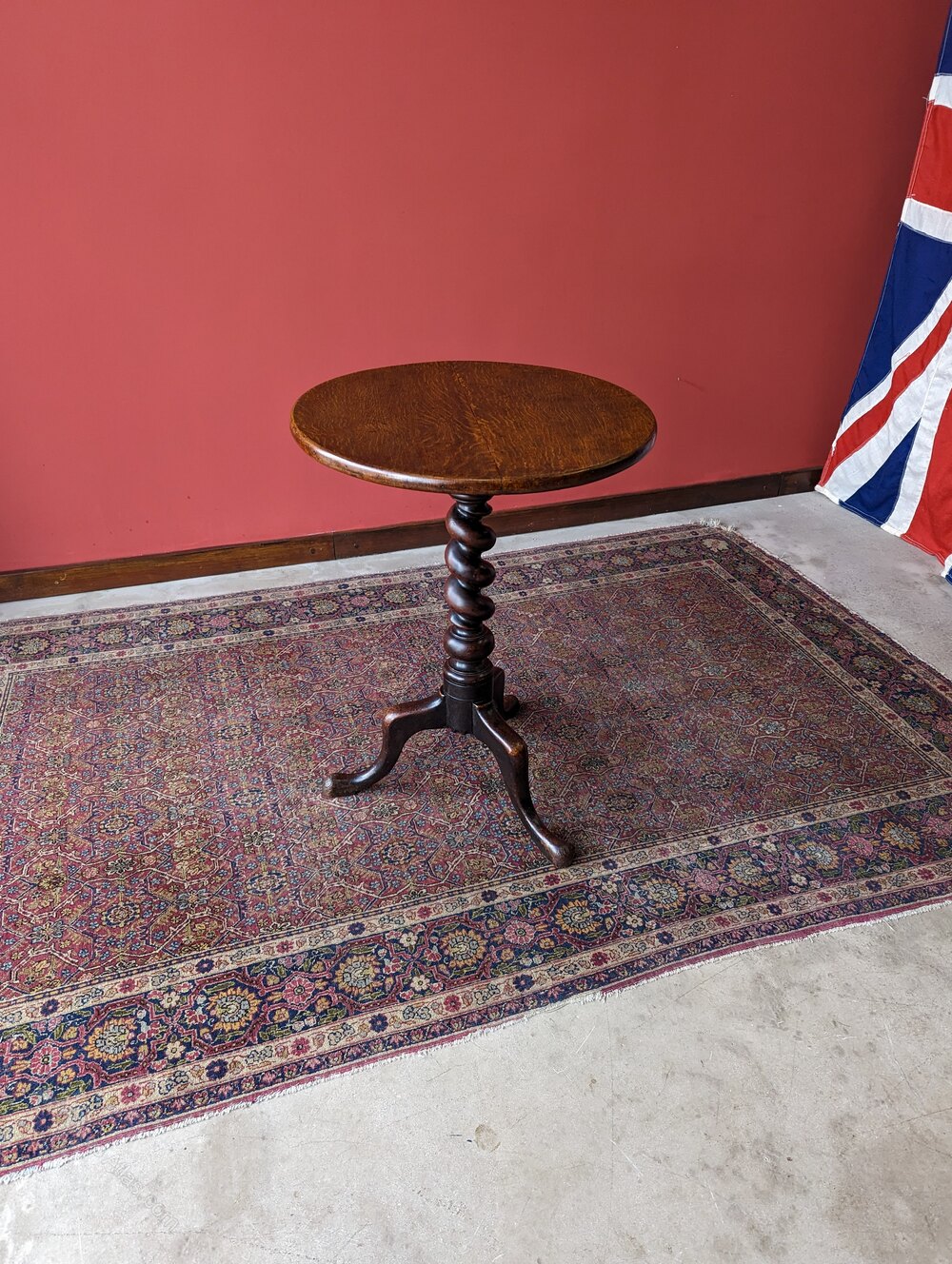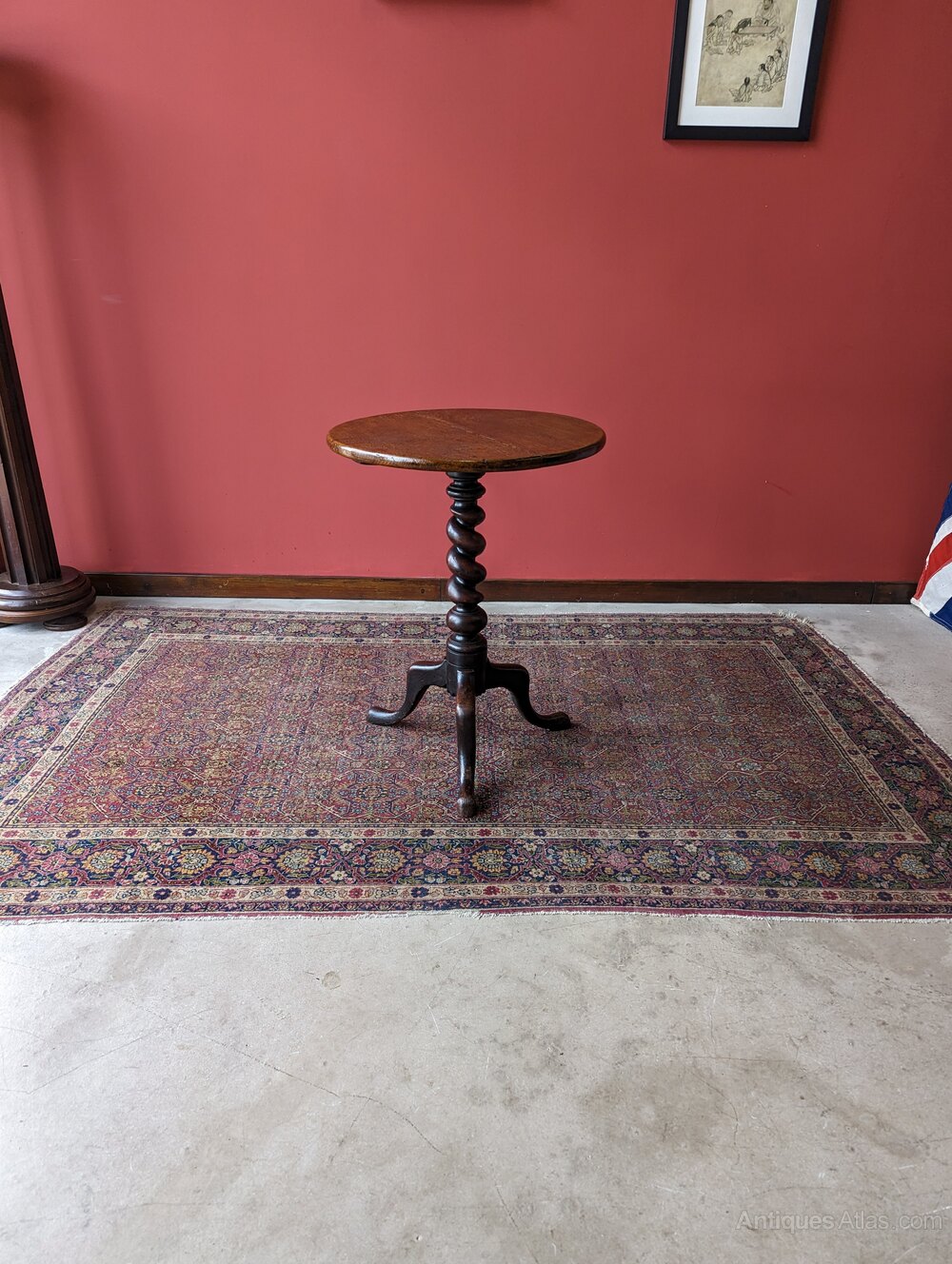 An early Victorian circular mahogany occasional table with a thick barley twist column pedestal leading to a tripod base.