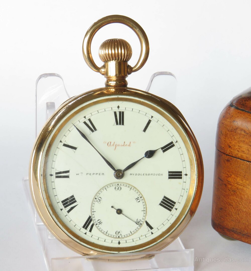 The dial is signed, “Adjusted” and it has the name of the original retailer, William Pepper of Middlesbrough. The dial has a faint hairline running from number 10 towards the sub seconds dial.