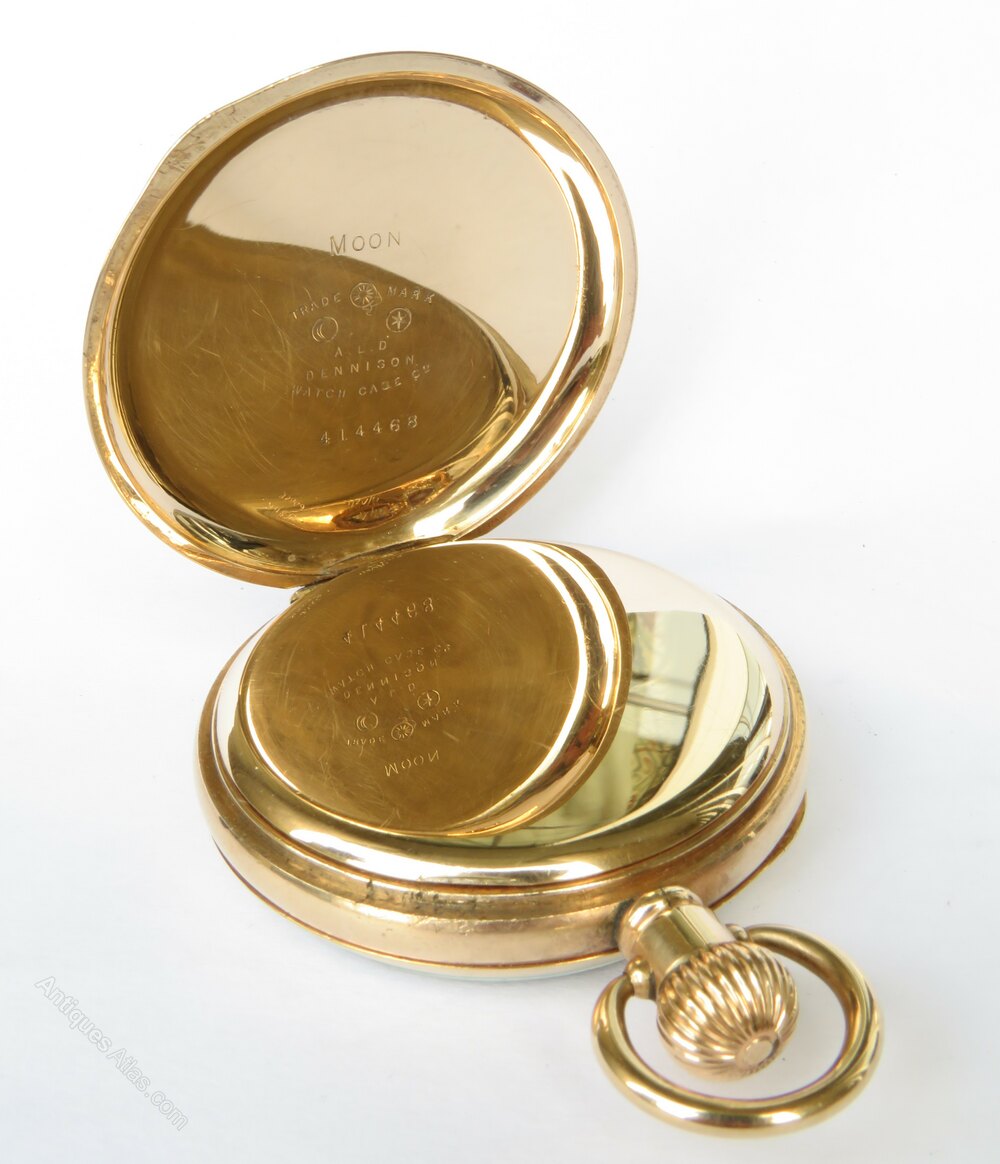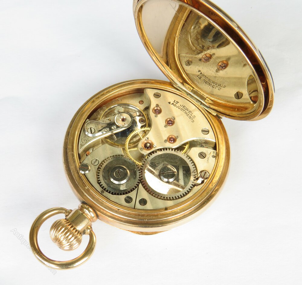 The watch measures 50mm diameter excluding the winding stem and the loop. The case is the gold filled Moon model from the Birmingham case maker Aaron Dennison. The company supplied cases for various watch makers. The case is in good condition, just some surface scratches to the back but not too detrimental.