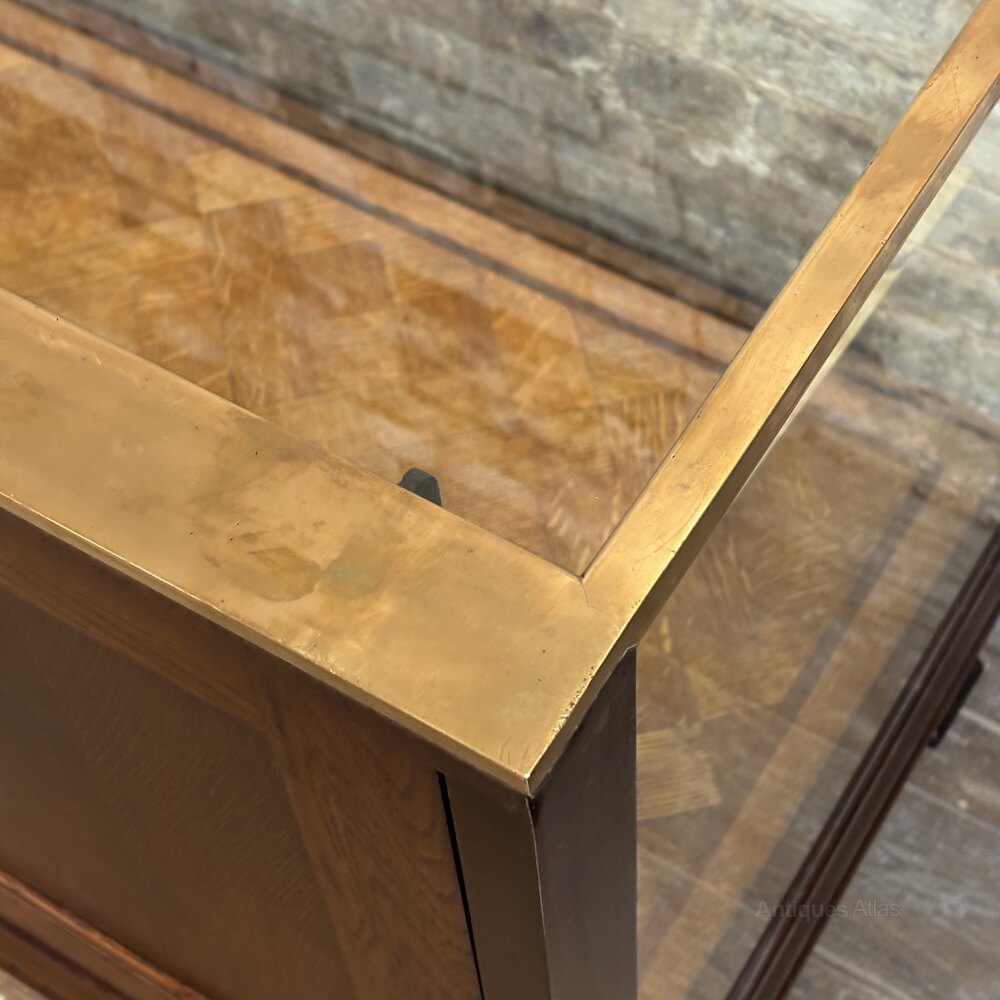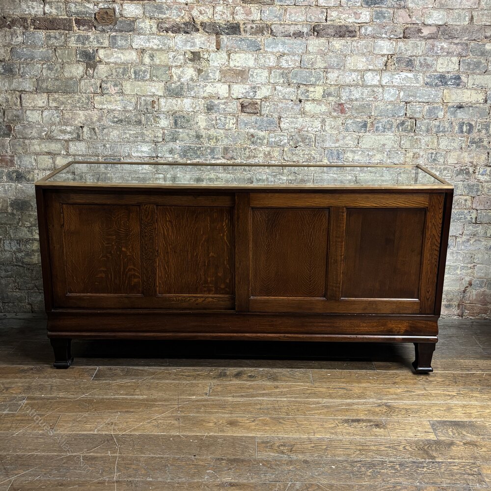Antique Oak & Brass Display Counter