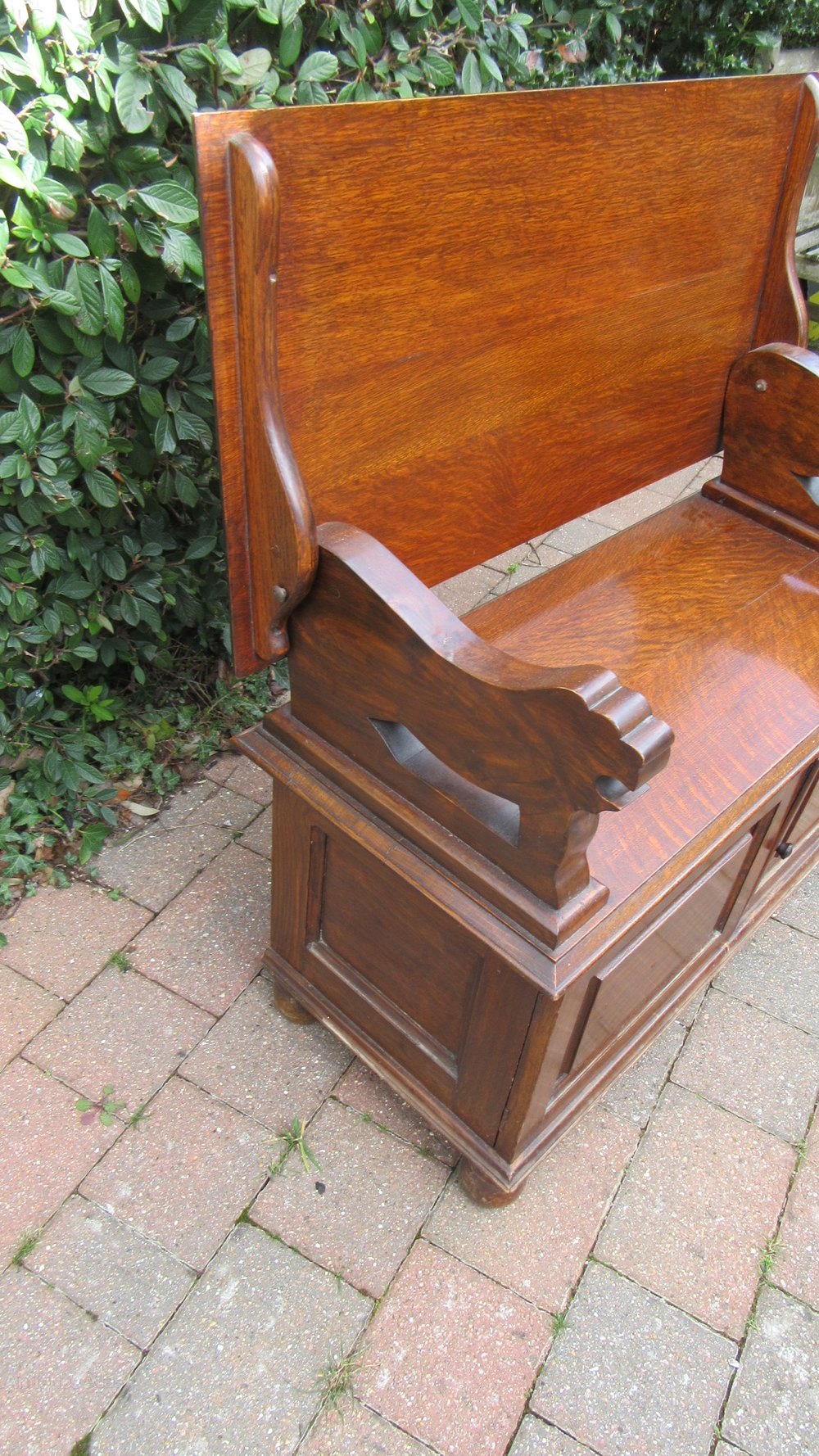 Antique Oak Monks Bench with Cupboard space Below ,94 cm high 93 cm wide 46 cm deep