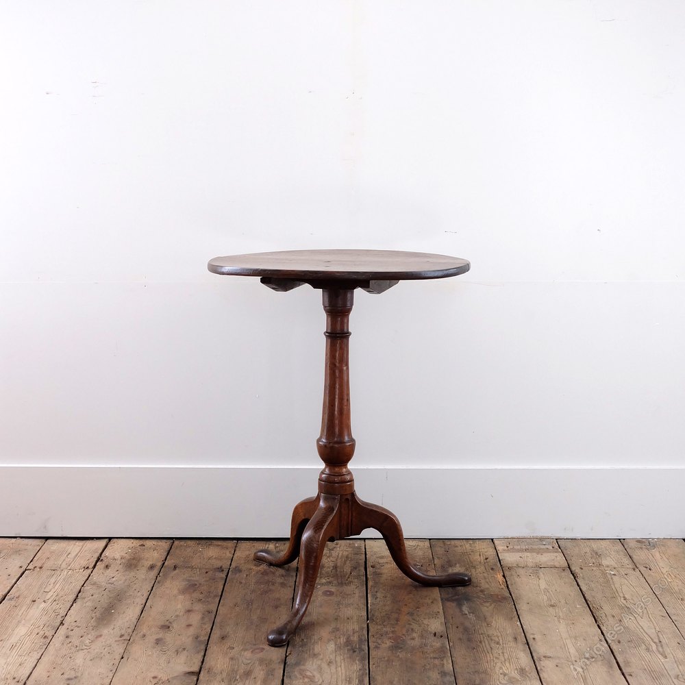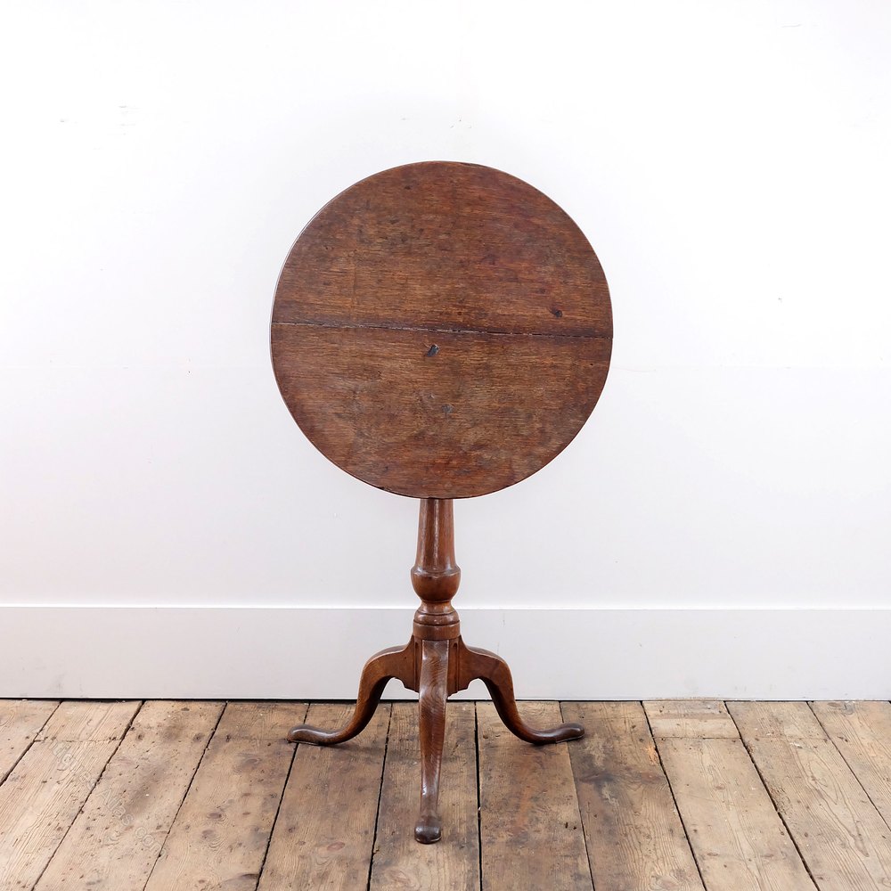 Very charming antique English side table in oak, mid 19th century, tilt top, lovely patina, great form, unusual small size.