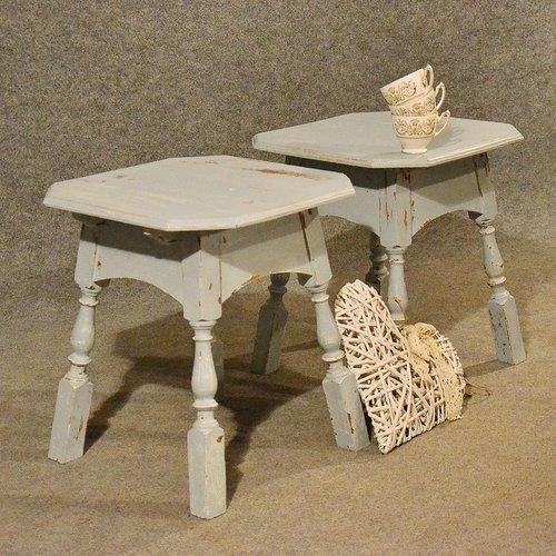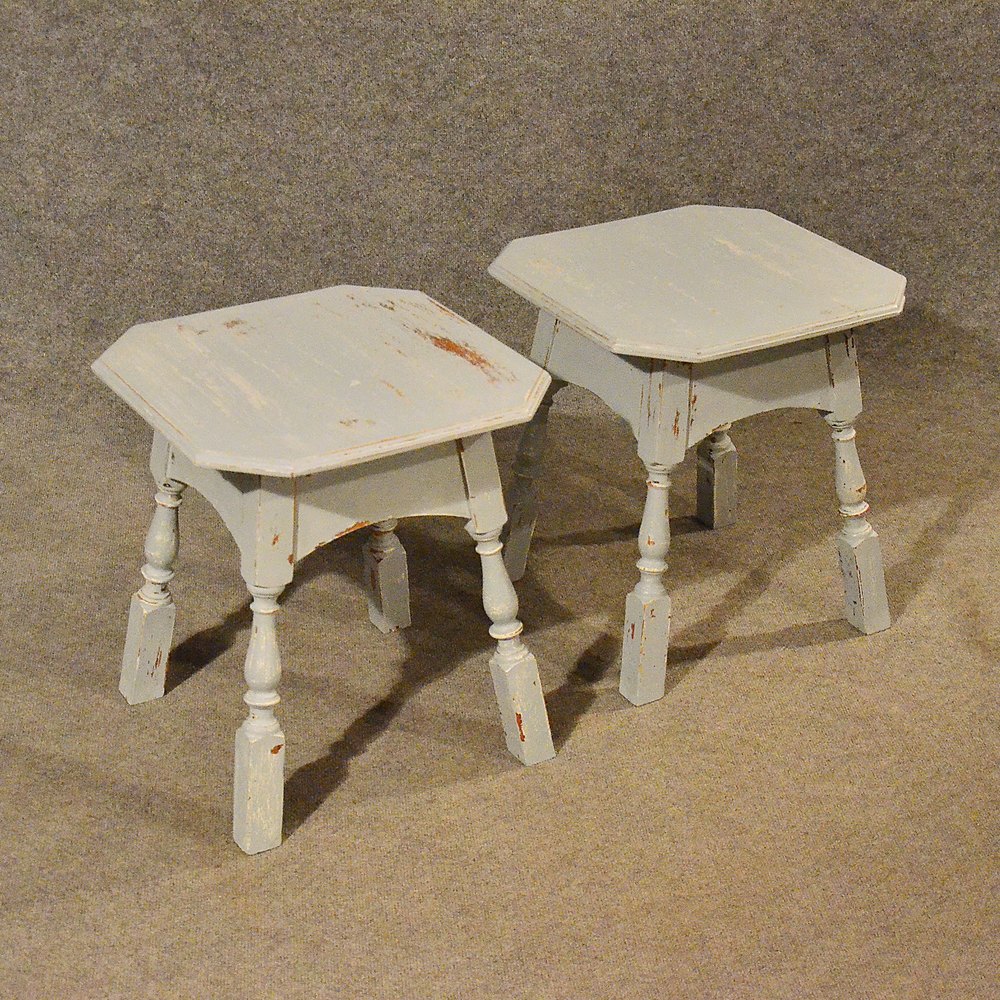 Antique Pair of Painted Oak Side Tables - English Victorian - c1900