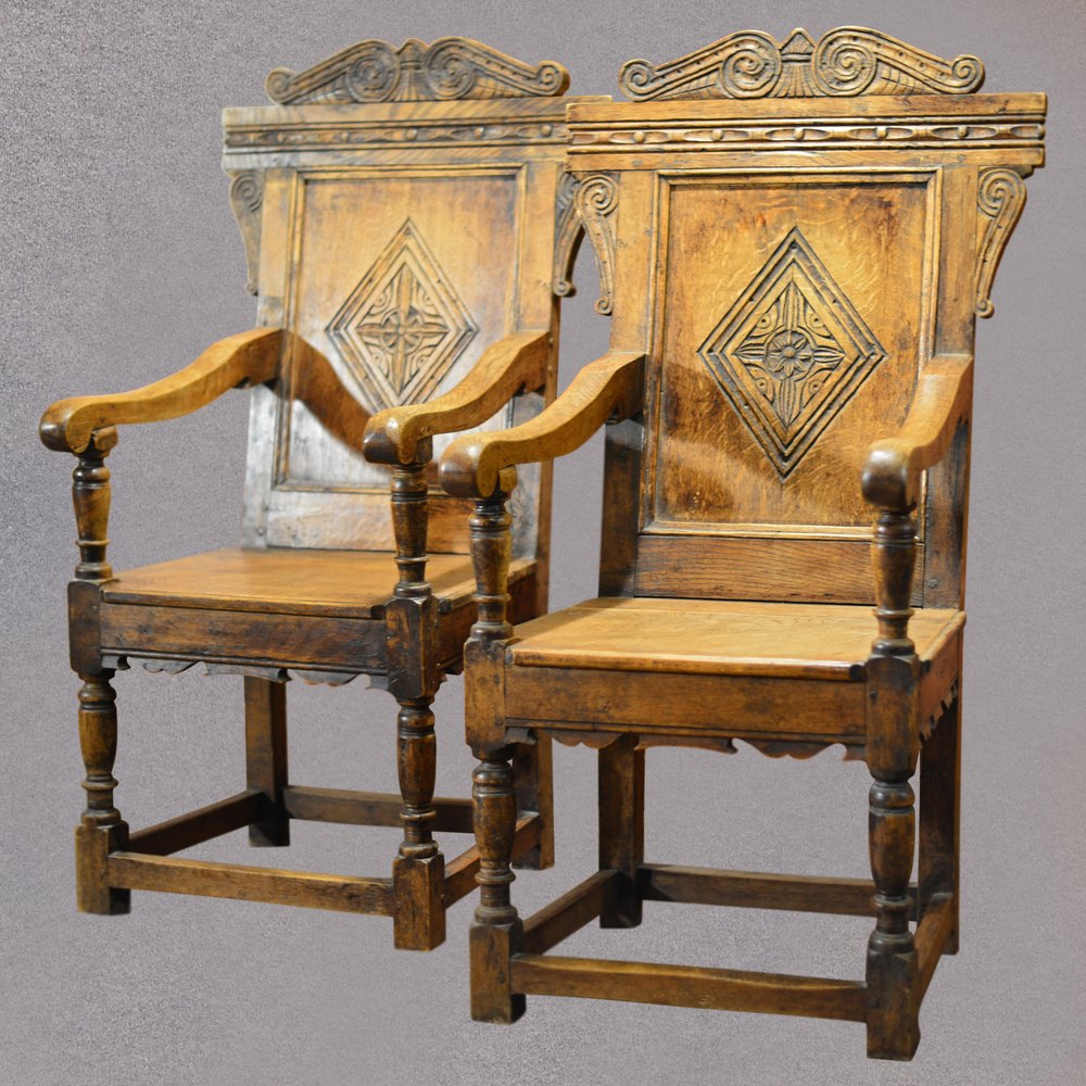 Antique Pair of Baronial Carver Chairs, C19th