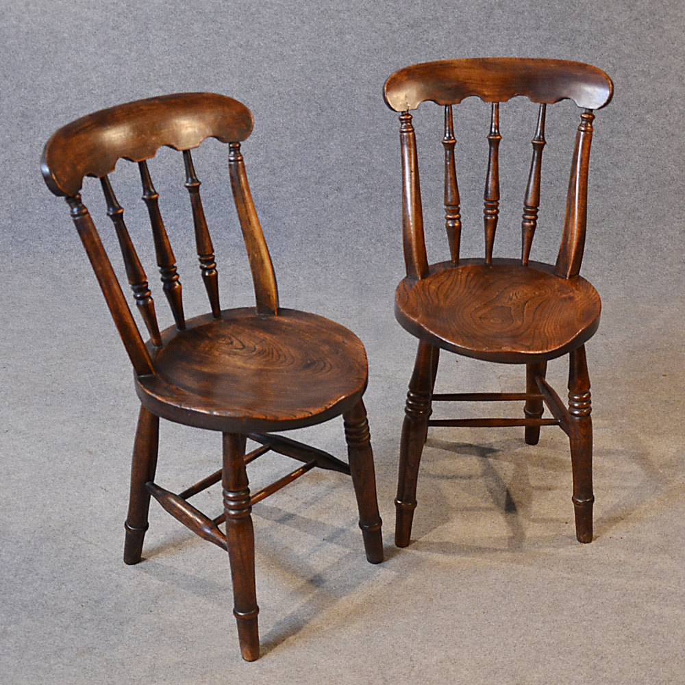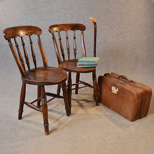 Antique Pair Quality Victorian Elm Kitchen Dining