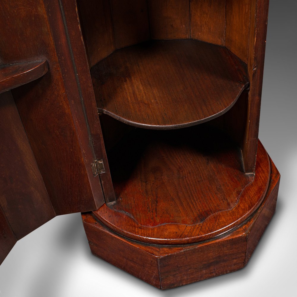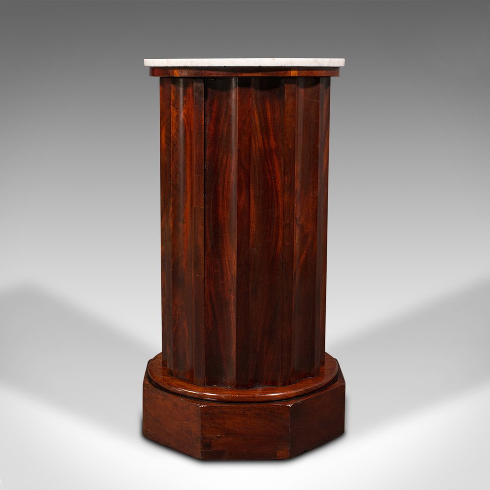 This is a superb antique pedestal cabinet, with an appealing and unusual column form. The rich flame stocks present beautifully, whilst the interior offers generous storage for the bedside or favourite spirits. Solid joints and construction, delivered waxed, polished and ready for the home.