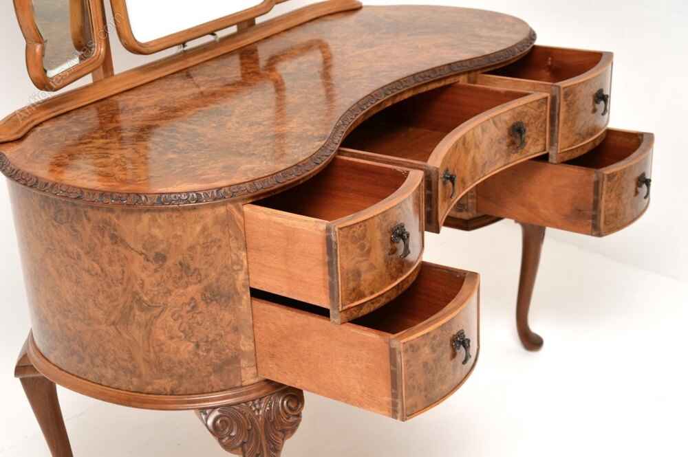 Antique Burr Walnut Art Deco Style Dressing Table
