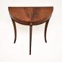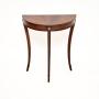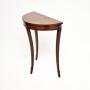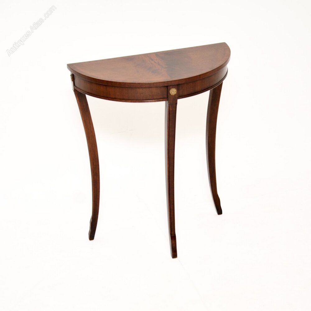 The quality is lovely, this is a very useful and petite size. The three legs have a beautiful sabre shaped design, supporting a demi-lune shaped top. The top is nicely cross banded and has gorgeous flame mahogany grain patterns.