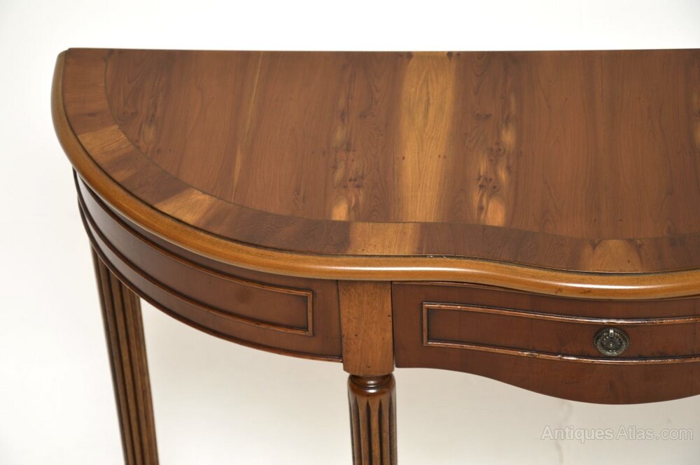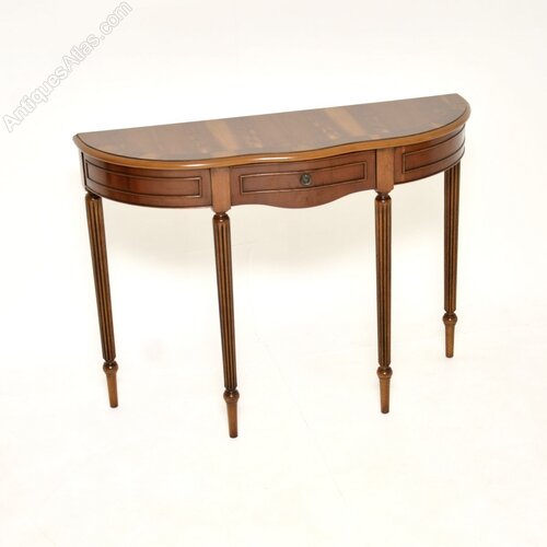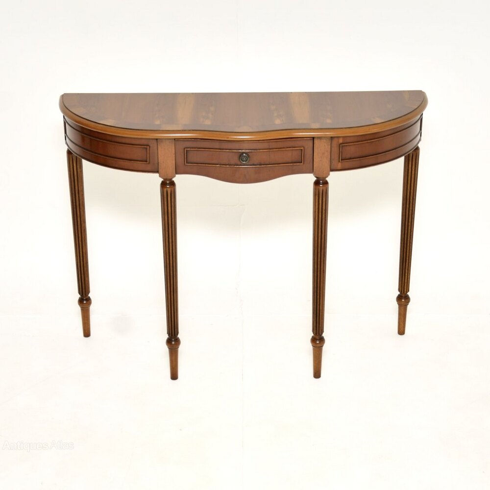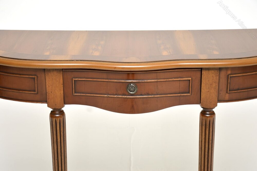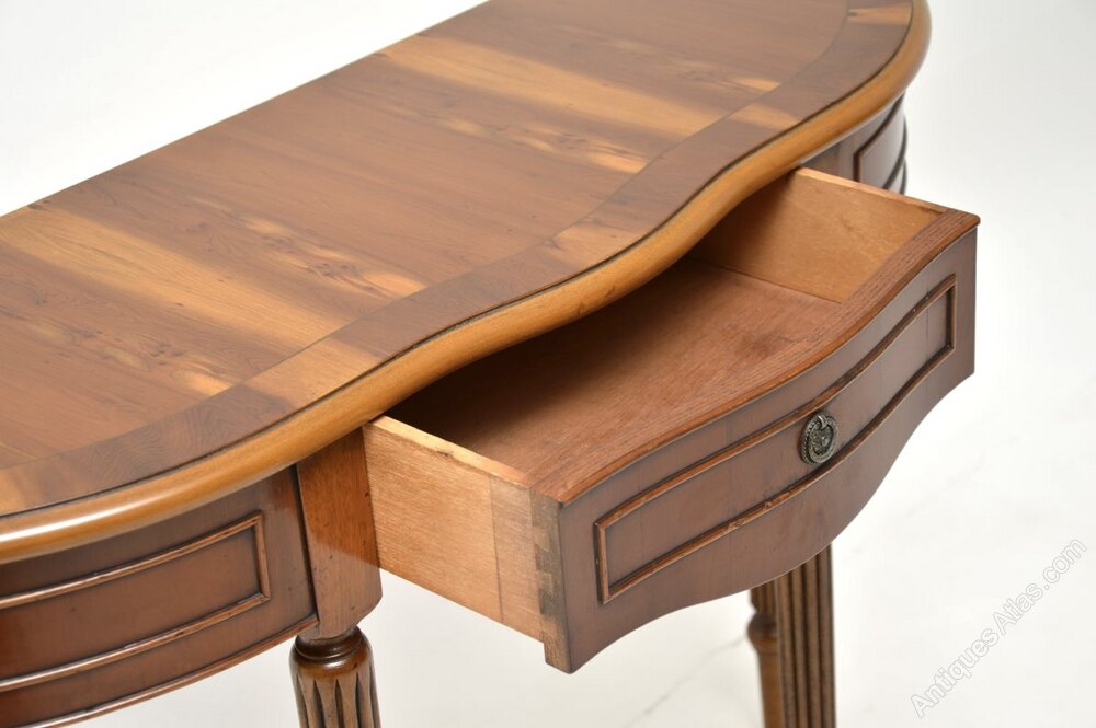 A fine and elegant antique Regency style yew wood console table. This was made in England, it dates from around the 1950’s.