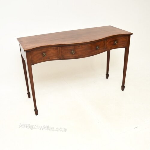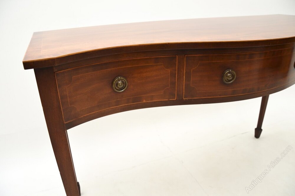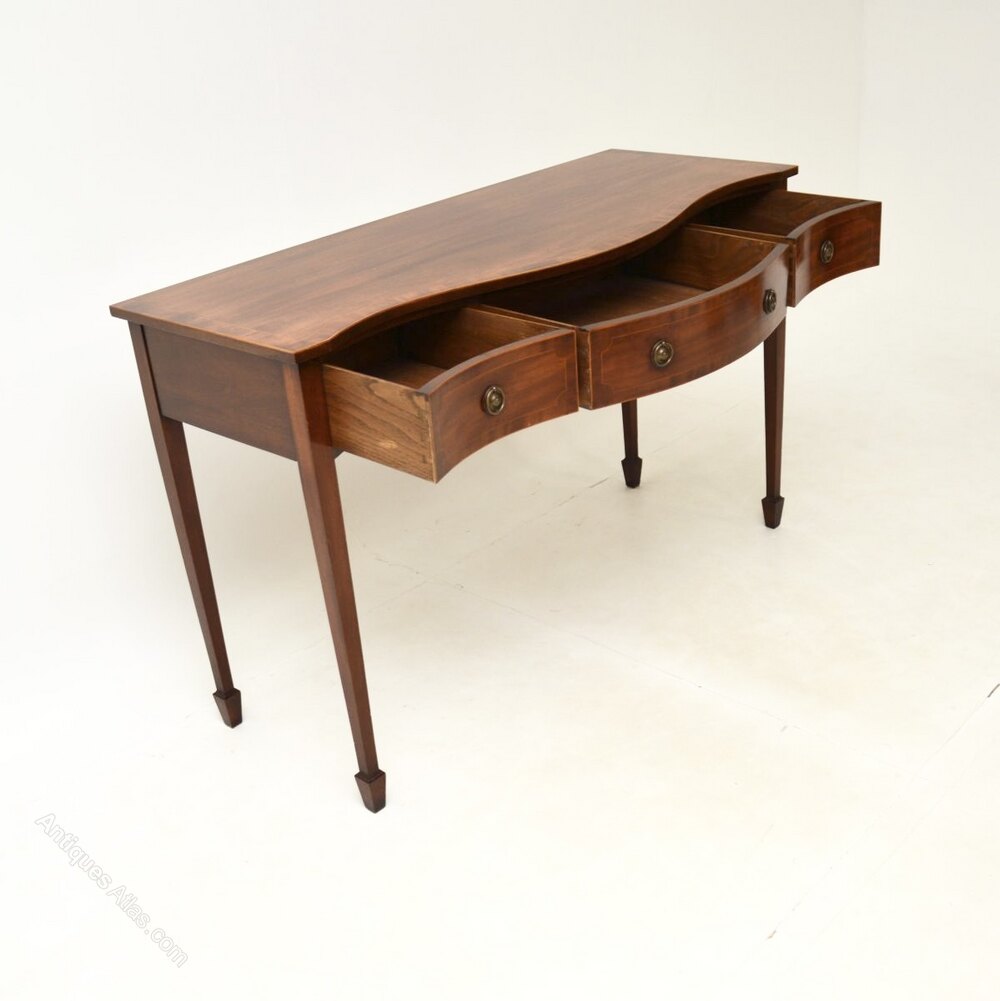A smart and very well made antique Sheraton style inlaid mahogany console table. This was made in England, it dates from around the 1920’s.