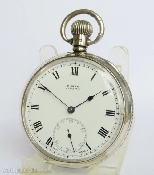Antique silver Buren Grand Prix pocket watch, 1935.