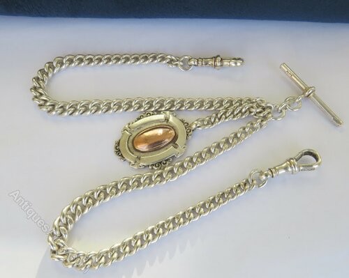 Heavy Antique Silver Pocket Watch Chain And Fob