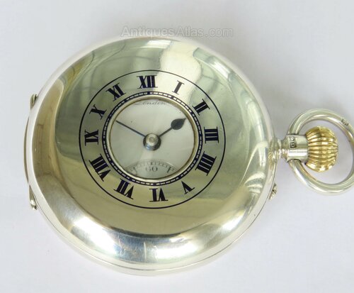 Antique silver J W Benson half hunter pocket watch, super condition.