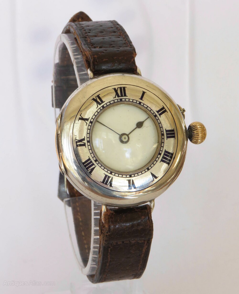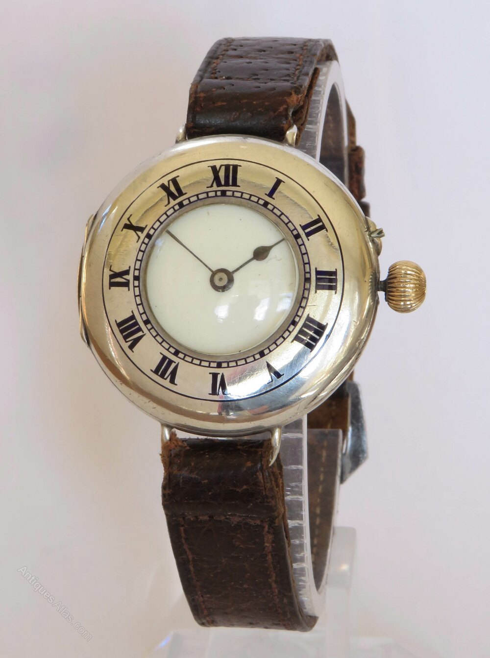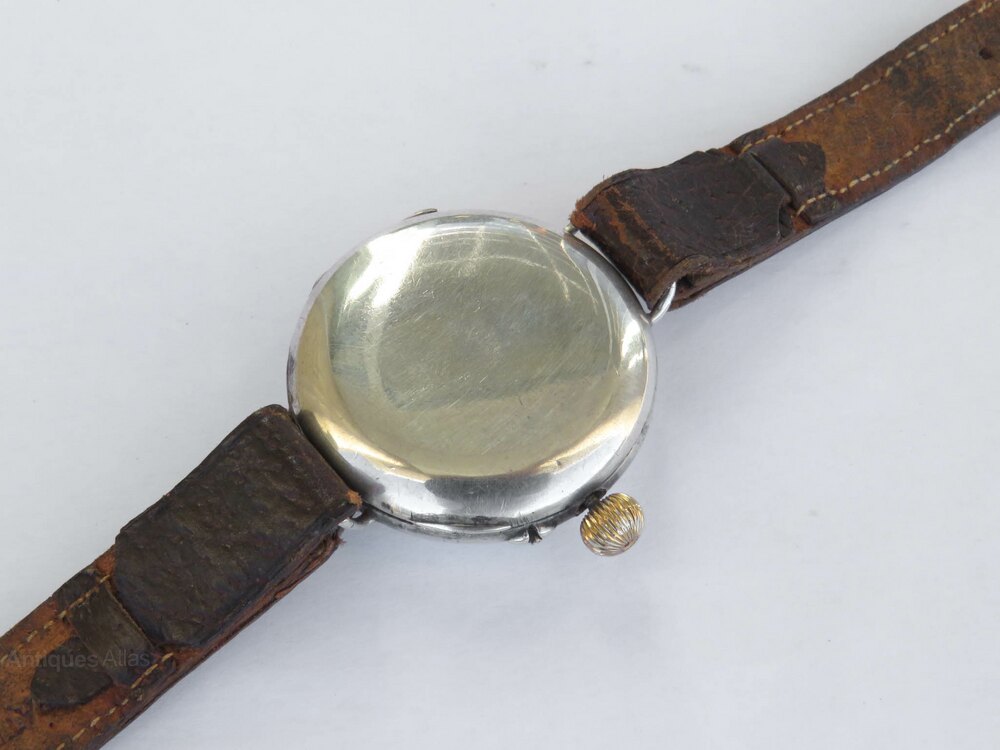 The watch measures 33mm diameter excluding the onion winding crown and the fixed wire lugs. The case is silver and there are hallmarks inside all three covers for London (import mark), 1912, together with a sponsor’s mark for Charles Nicolet, initially one of the partners and subsequently the owner of Stauffer & Co. The case is in good condition. Enamel filled Roman numerals to the front, surrounding a central lens.