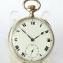 The watch measures 49mm diameter excluding the winding stem and the loop. The case is silver and there are hallmarks inside the two case backs for London (import mark), 1917 with a sponsor’s mark for George Stockwell. From 1 June 1907, Stockwells acted as assay agents, facilitating the import into Britain of foreign gold and silver items which had to be assayed and hallmarked in a UK assay office before being released for retail.