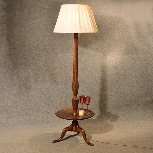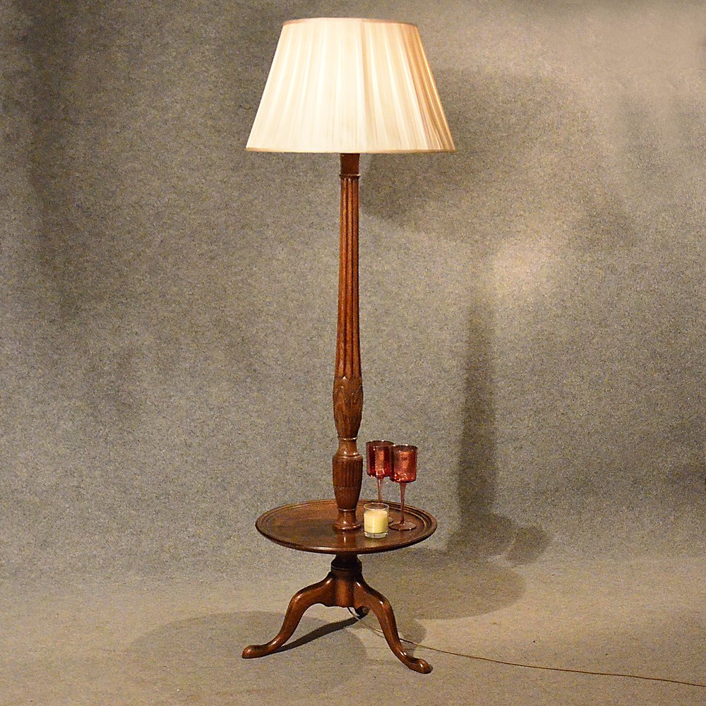 Attractive Quality Standard Lamp & Shade - With Wine Table - c1910