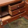 The quality is absolutely amazing, this is a very smart and very useful item. The top central drawer slides out and pulls down to reveal a leather top writing surface with pigeon holes and internal drawers. This has lots of storage space, all the drawers have fine hand cut dovetailed joints. There are beautiful brass fixtures throughout, and this comes apart in two pieces for ease of transport.