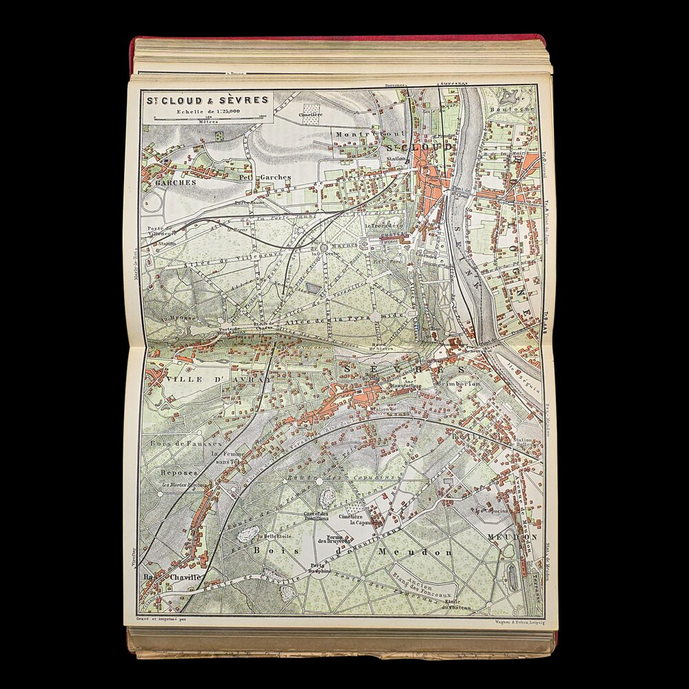 This is an antique copy of Baedeker’s Paris and its Environs, a bound and illustrated travel guide book, presented in its intact, original order with only light markings. A superb example of Baedeker’s renowned guides admired for their clarity, detail and charm, offering a fascinating insight into Parisian life and travel in the late 19th century.