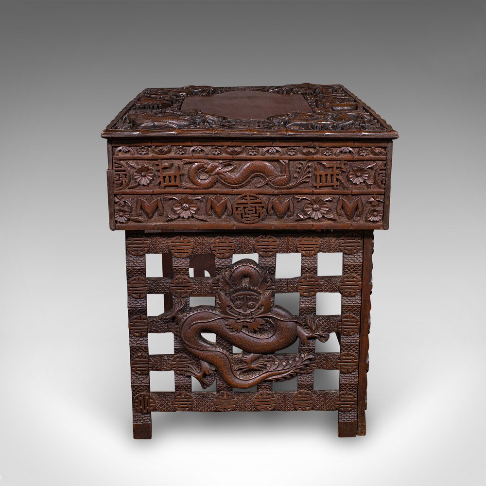 This is a captivating antique travelling altar, with superb Oriental carving and campaign versatility. Solid joints and construction, delivered ready to enjoy or display.
