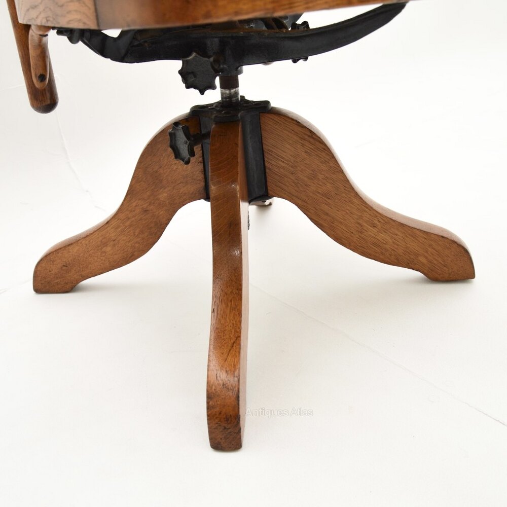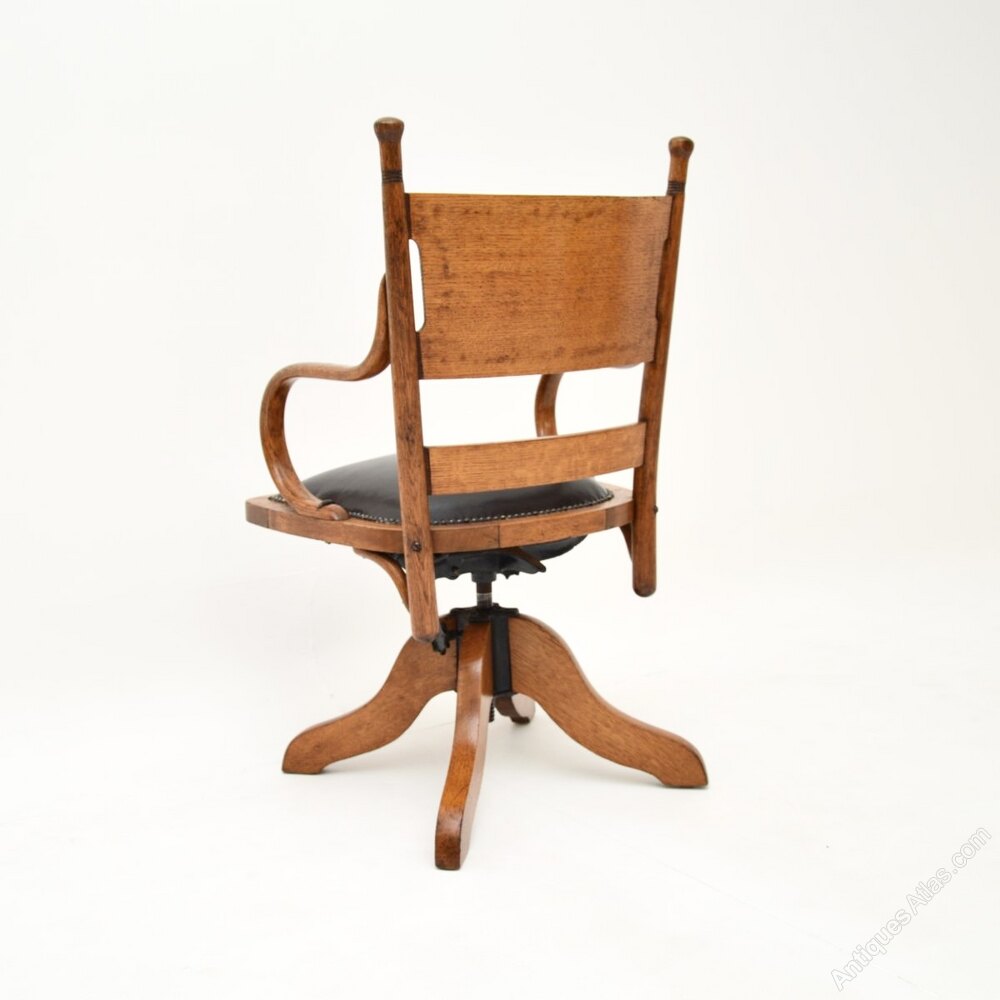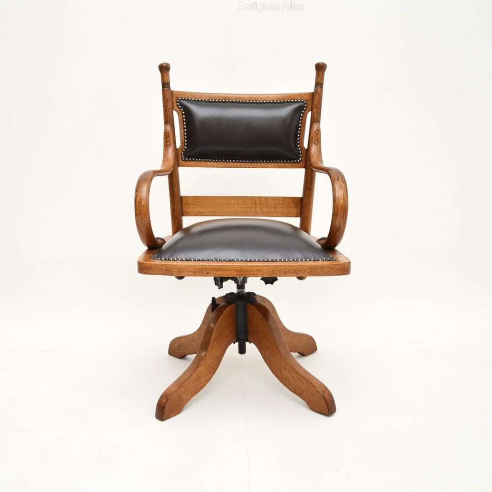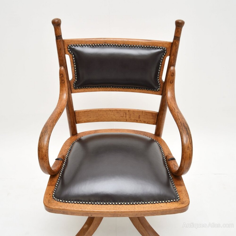 A smart and very well made antique Victorian bentwood and leather swivel desk chair. This was made in England in the Arts and Crafts fashion, it dates from around 1890-1900.