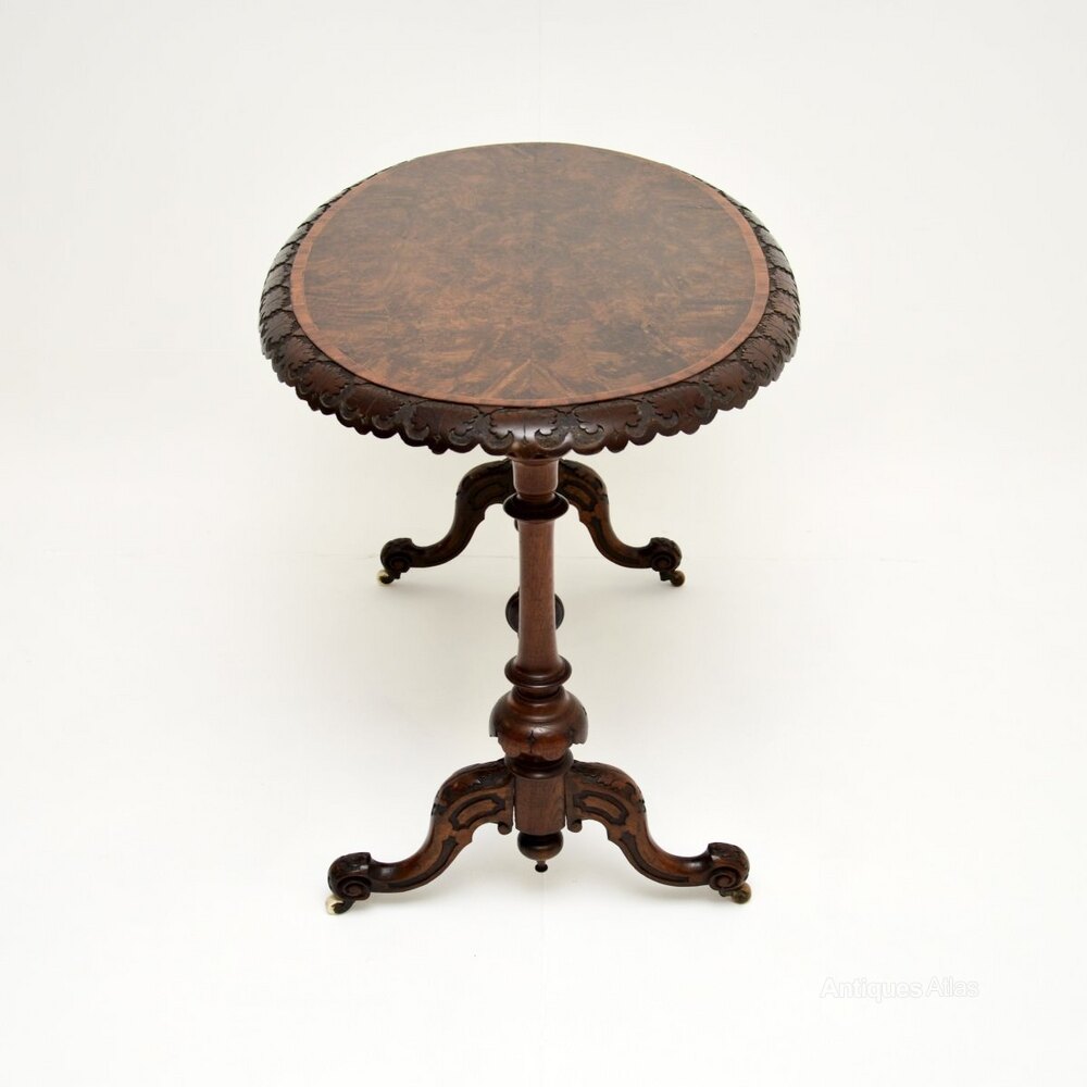 A stunning antique Victorian burr walnut occasional table, made in England and dating from around the 1860-1880 period.