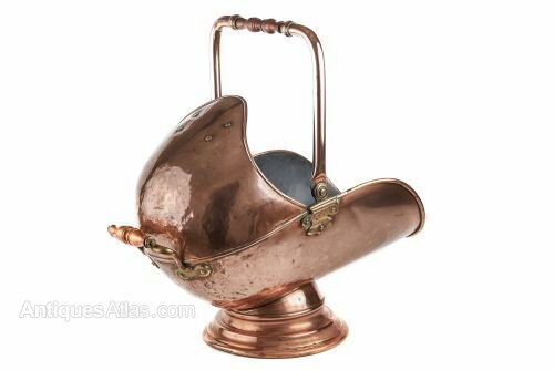 Vintage Helmet Coal Scuttle, English Copper, Fire