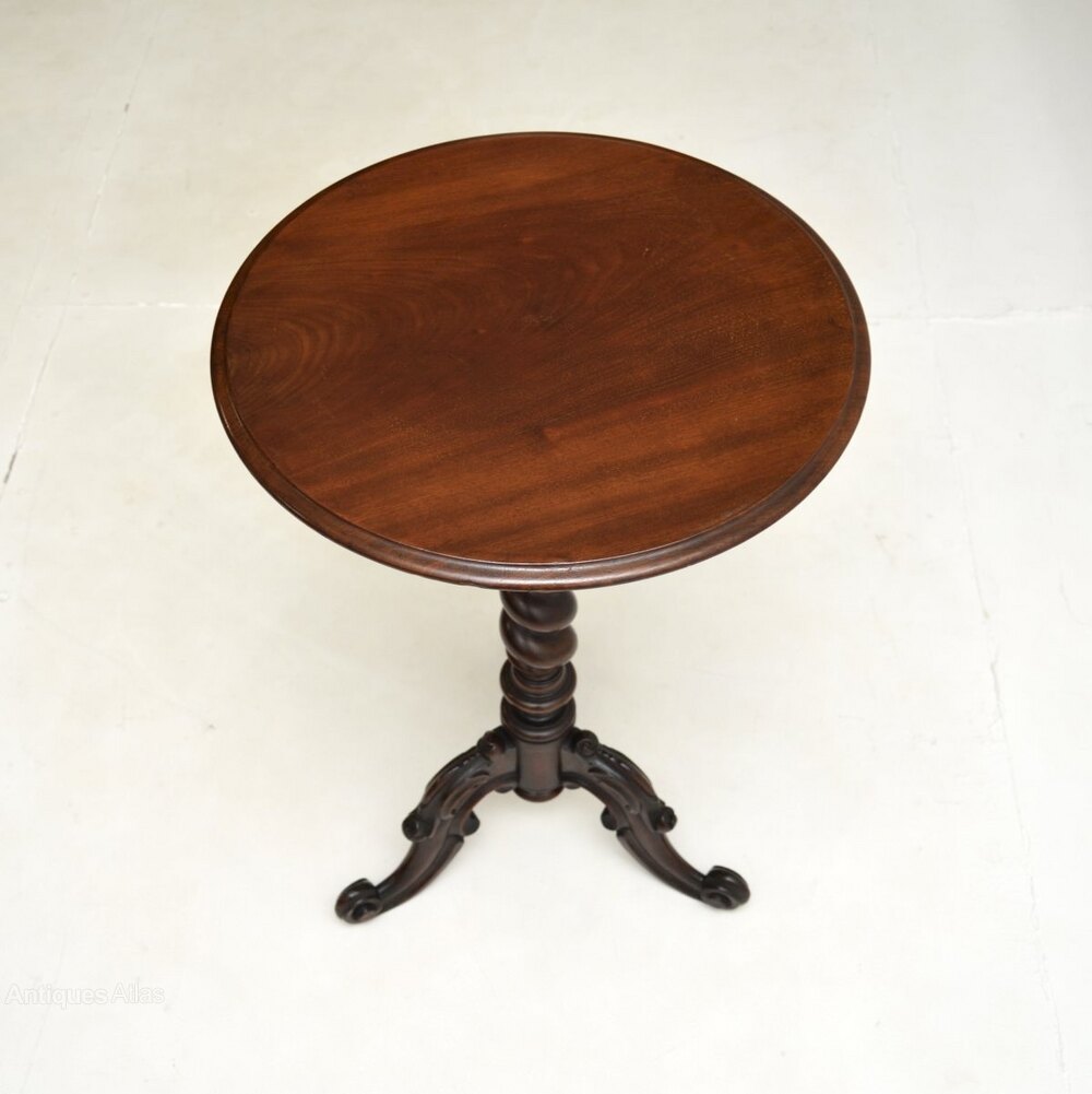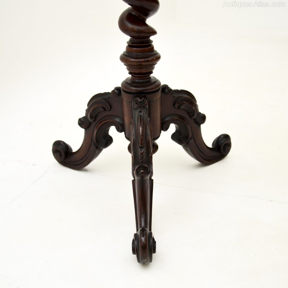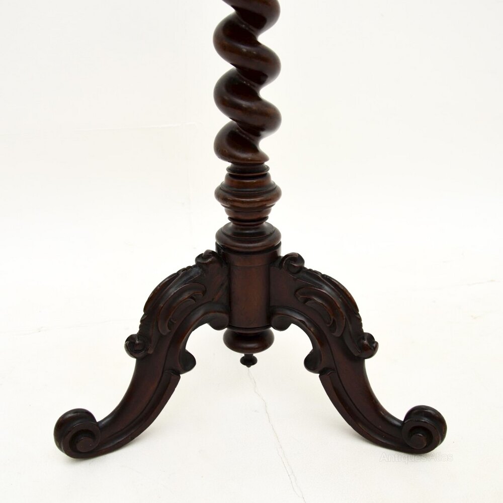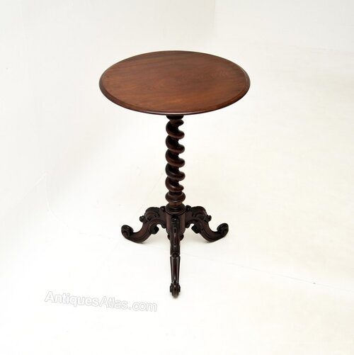 It is beautifully made and is of really high quality. The barley twist base gives a striking design aspect, it sits on a beautifully carved tripod base and has a solid mahogany top.