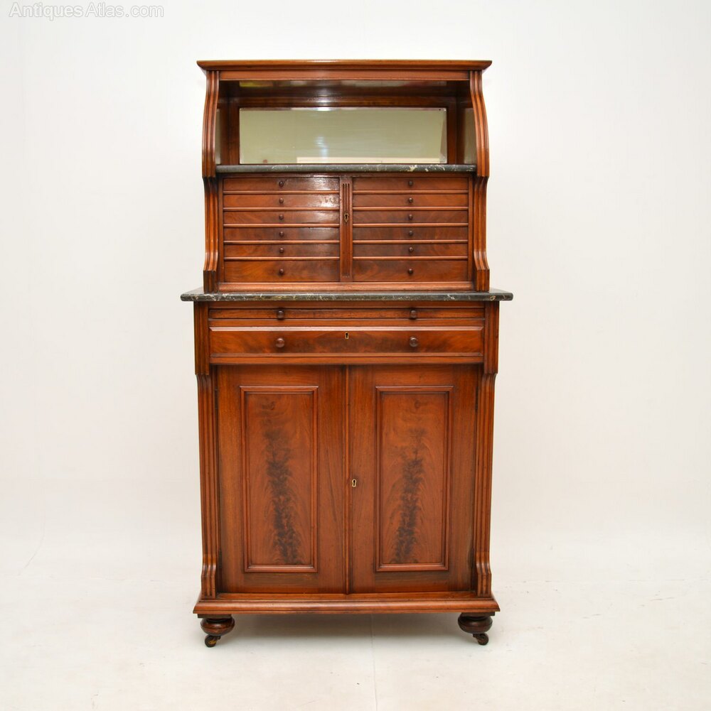 A wonderful antique Victorian mahogany dentist cabinet. This was made in England, it dates from around the 1860-1880 period. There is a makers label inside the door, which reads ‘Cash and Sons Ltd’, who were well known dental suppliers of the period.