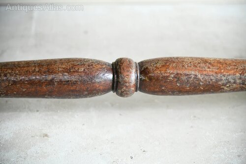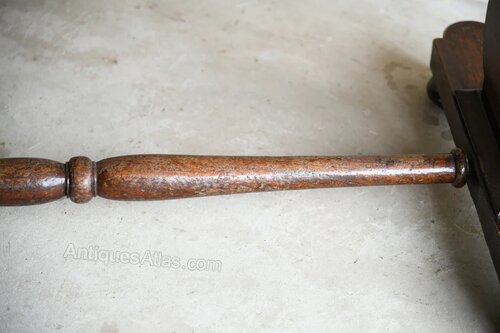 Condition Solid condition, the moulded edge is missing on the corners, later varnished finish, heavy wear and age to the stretcher and legs and the table top - please refer to the photos