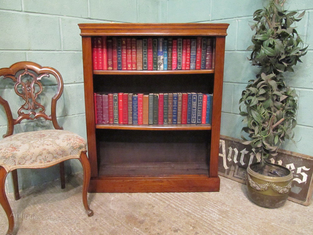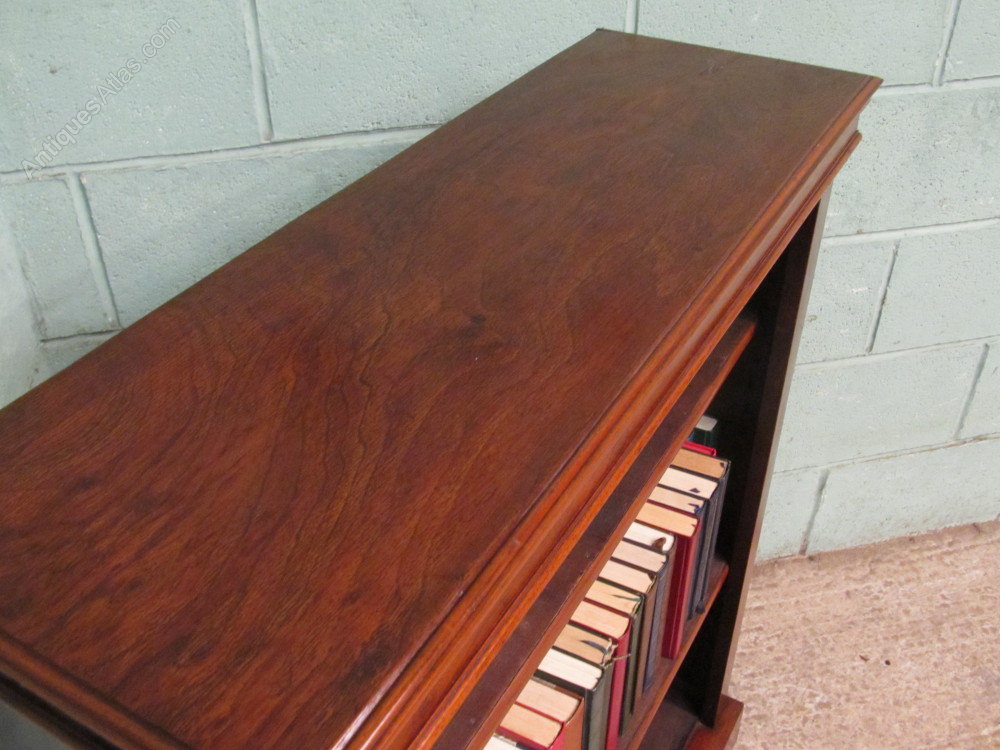 Antique Victorian Mahogany Open Bookcase and dating from around 1880. Constructed from quality mahogany it has a moulded edge to the top above a cross cut frieze with moulded edge and with two adjustable shelves and standing on a deep plinth base.