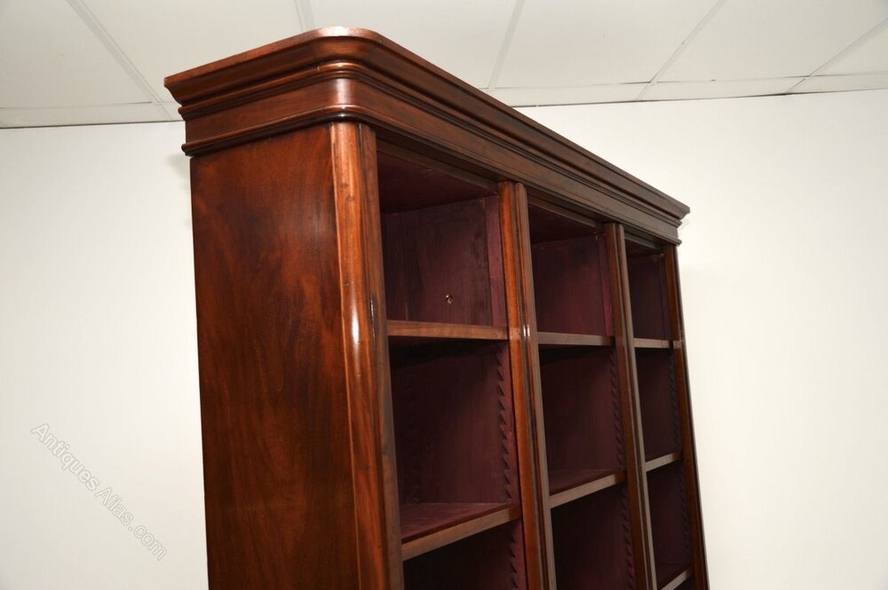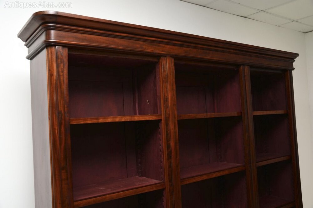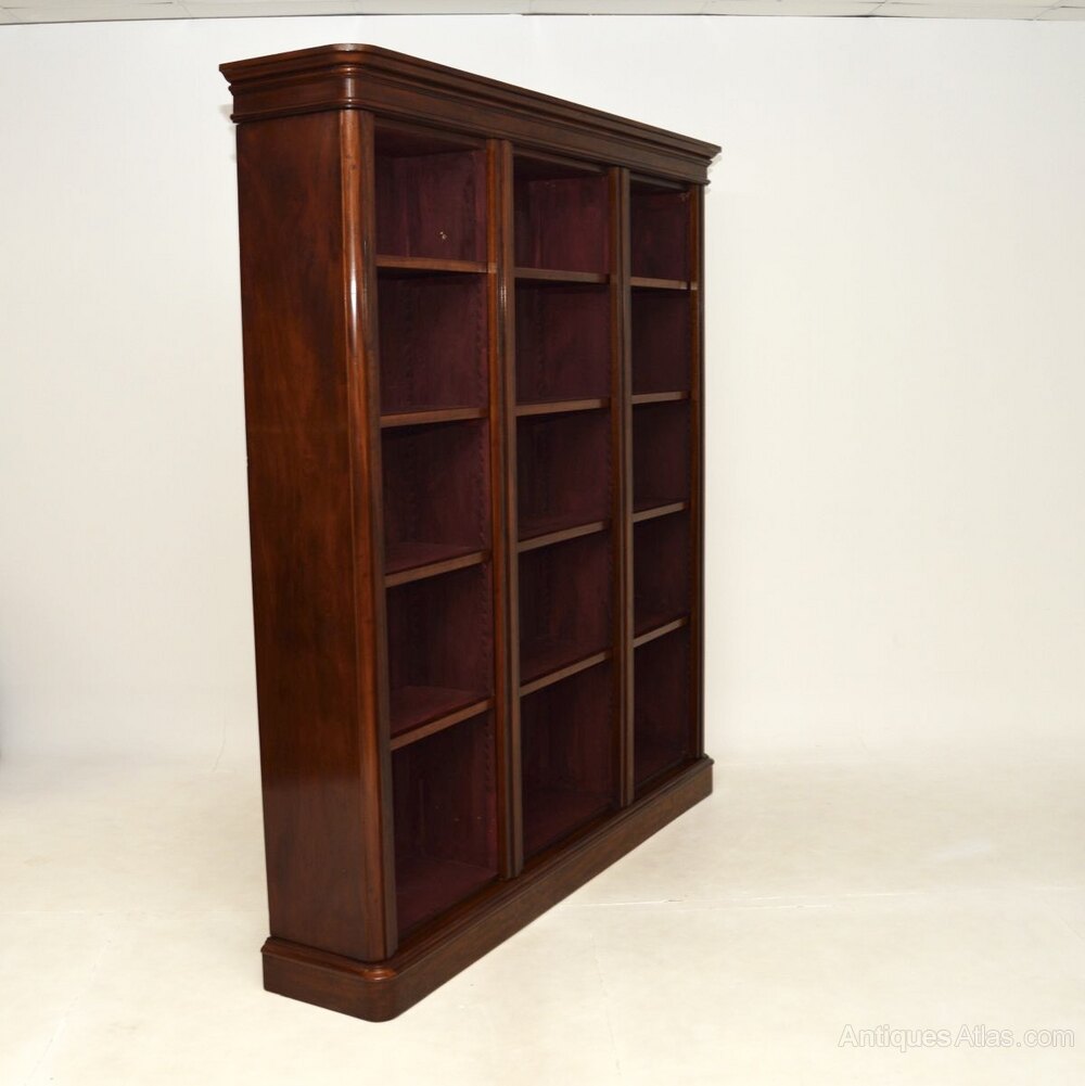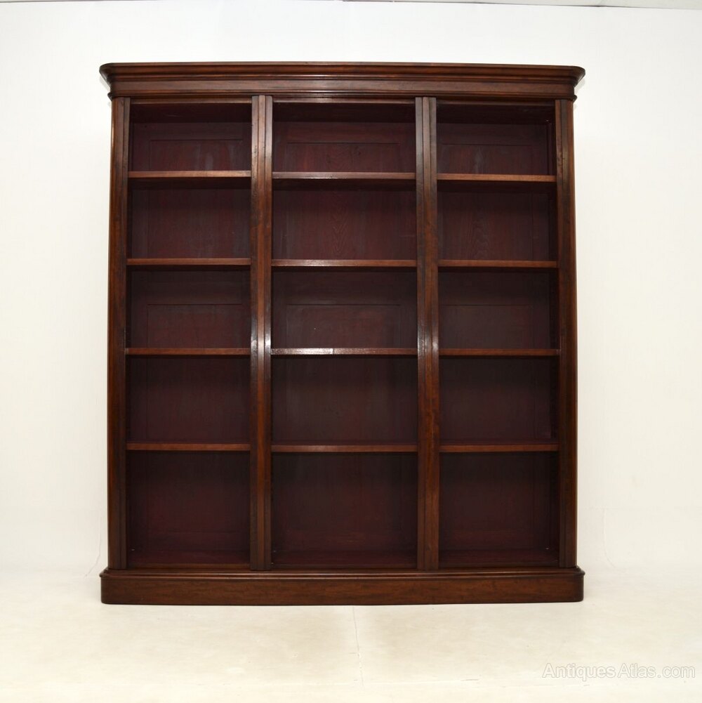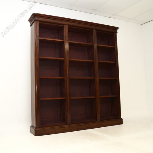 A magnificent antique Victorian mahogany open bookcase. This has been adapted by our restorer from an original three section Victorian wardrobe, so most of it is made from the original antique timber.