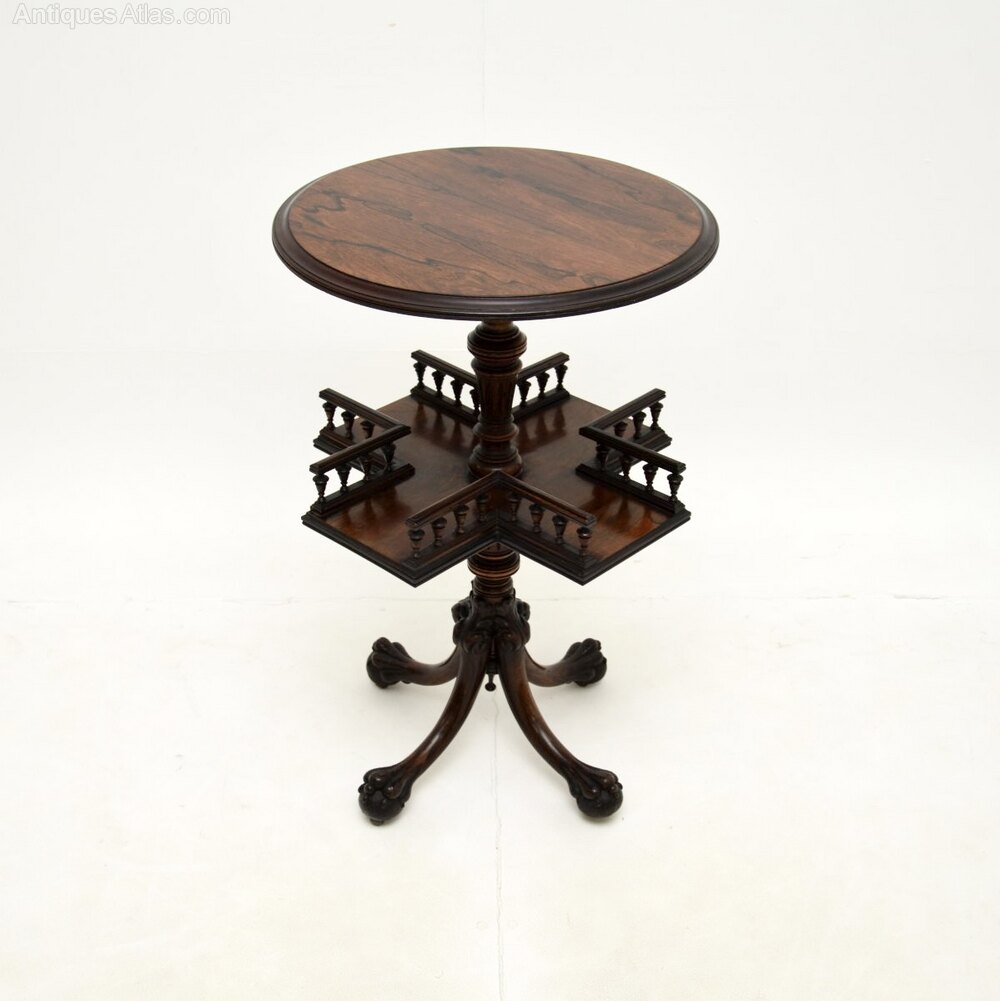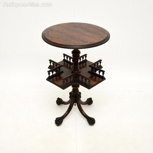 A smart and exceptionally well made antique Victorian revolving bookcase / occasional table in rosewood. This was made in England, it dates from around the 1860-1880 period.