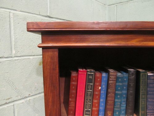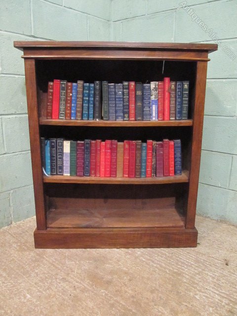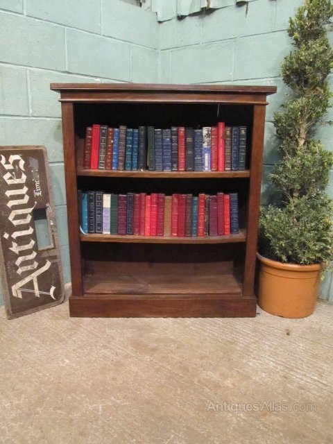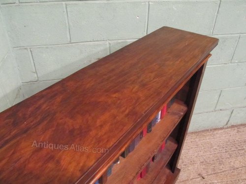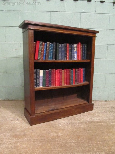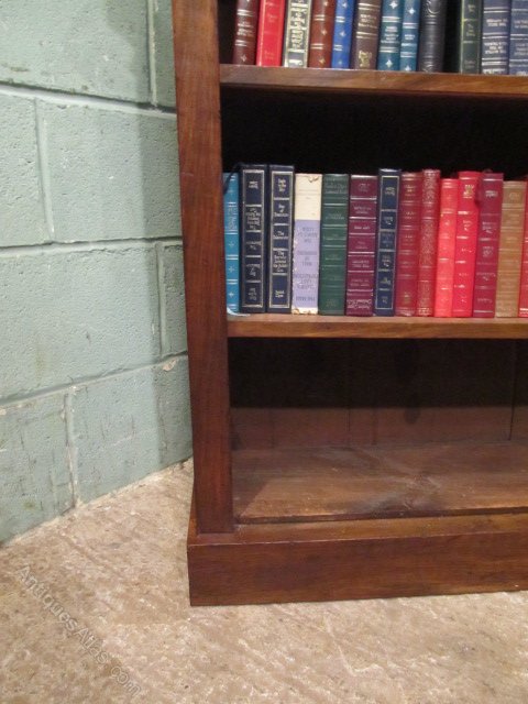 Antique Victorian Walnut Open Bookcase and dating from around 1880. Constructed from quality walnut it has square edge to the top with a wide moulded frieze under. Below are two original adjustable shelves. The bookcase stands on a deep plinth base.